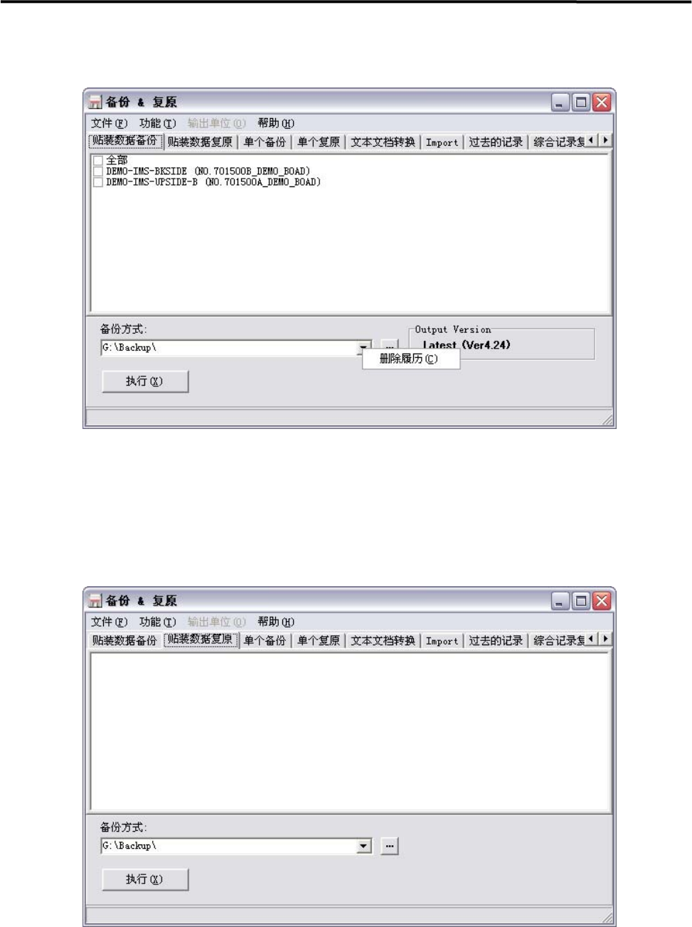 右击〈备份方式〉的文件路径,将显示出〈删除列表框履历〉按钮。