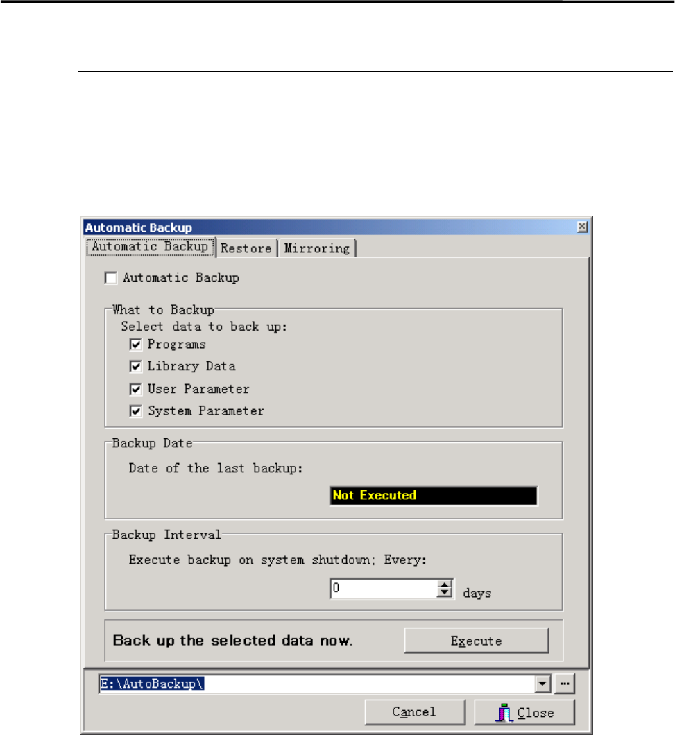 【注释】 自动备份机能将在贴片机的硬盘上作成备份文件。建议将重要的数据保存到 USB 存储器上。