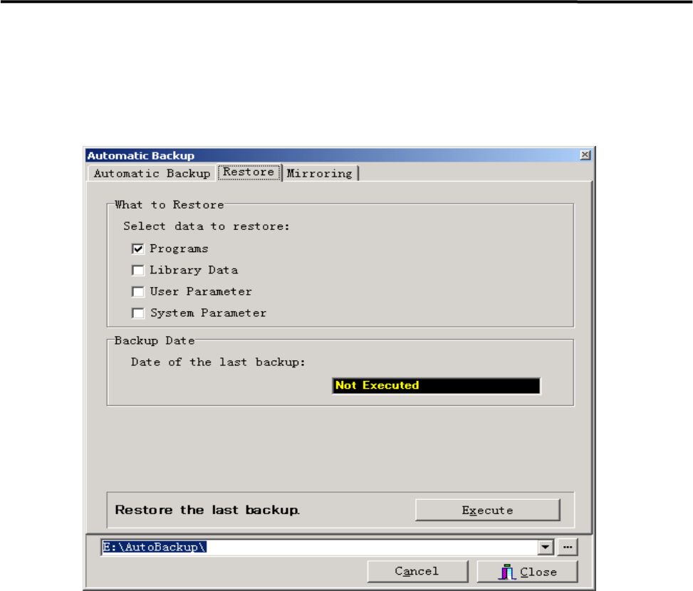 可以将备份的系统程序(MMI 程序和控制器程序)加以恢复。在系统升级失败等情况发生时,无法