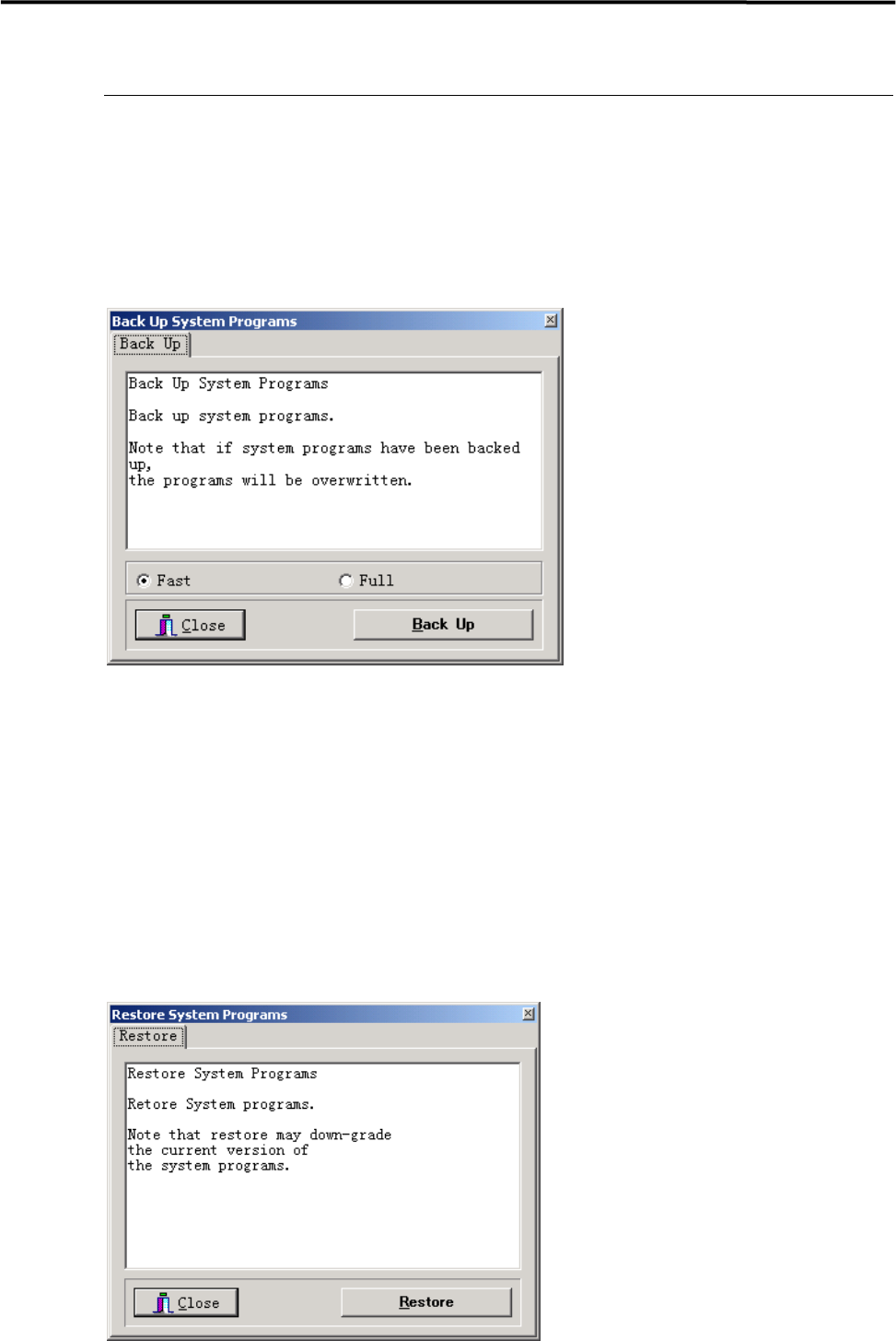 对备份的系统程序(MMI 程序与控制程序)进行复原。