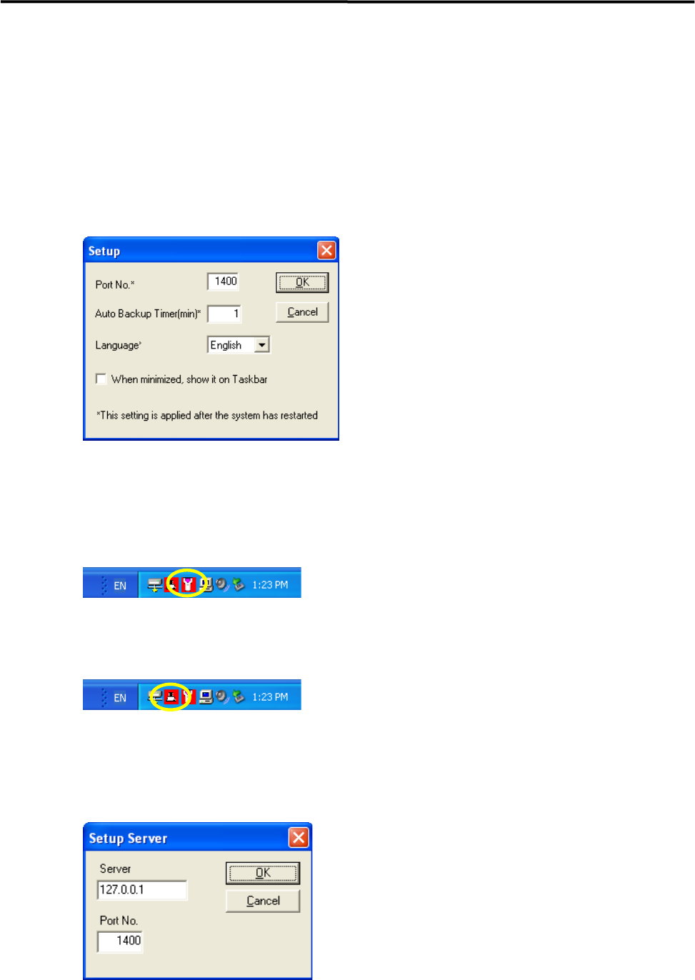 在对话框的“端口 No.”中输入端口号。默认设定为“1400”。(通常保持默认设定无需变更。)