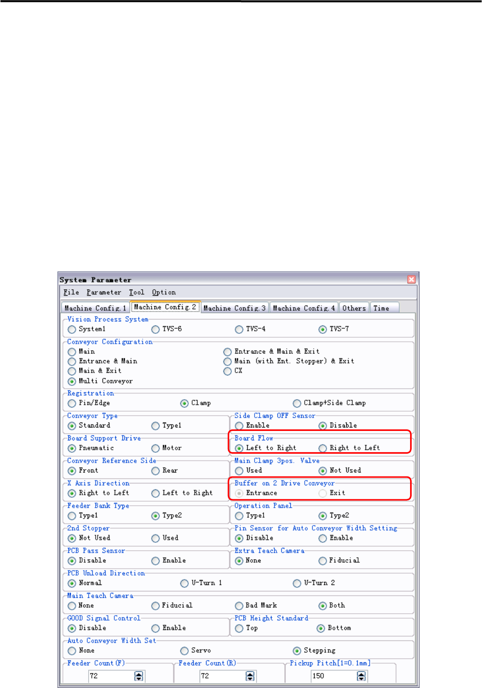② 在[传送带的搬送方向]栏内,可以对基板的搬送方向进行变更。