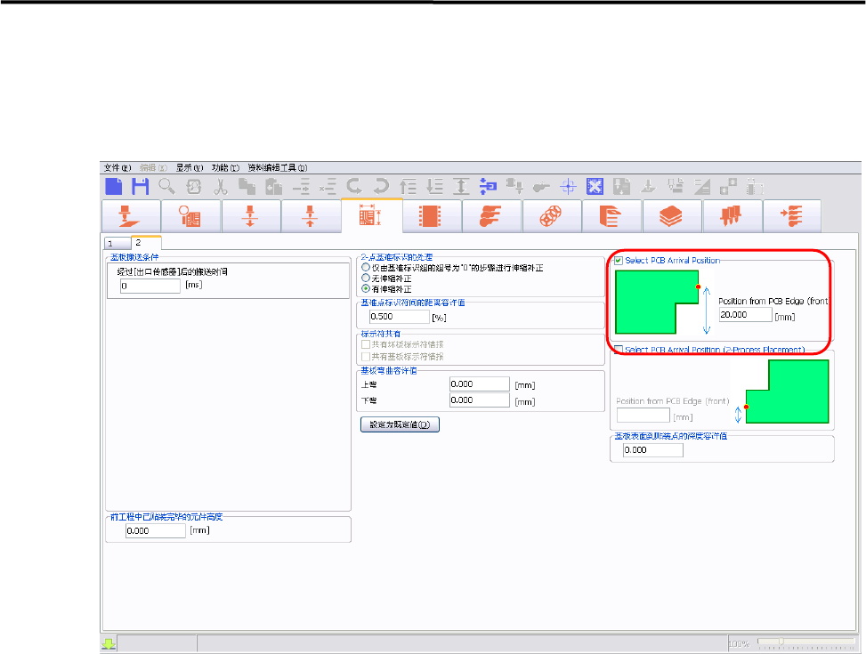 ② [到基板端(近前侧)的距离]栏将会显示出来。默认值为 20mm。