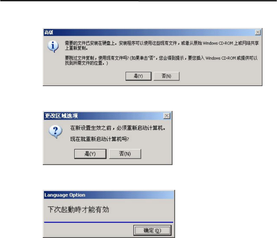 ⑤ 显示出「区域选项的变更」画面。在此不能进行再起动,请点击「否」按钮。