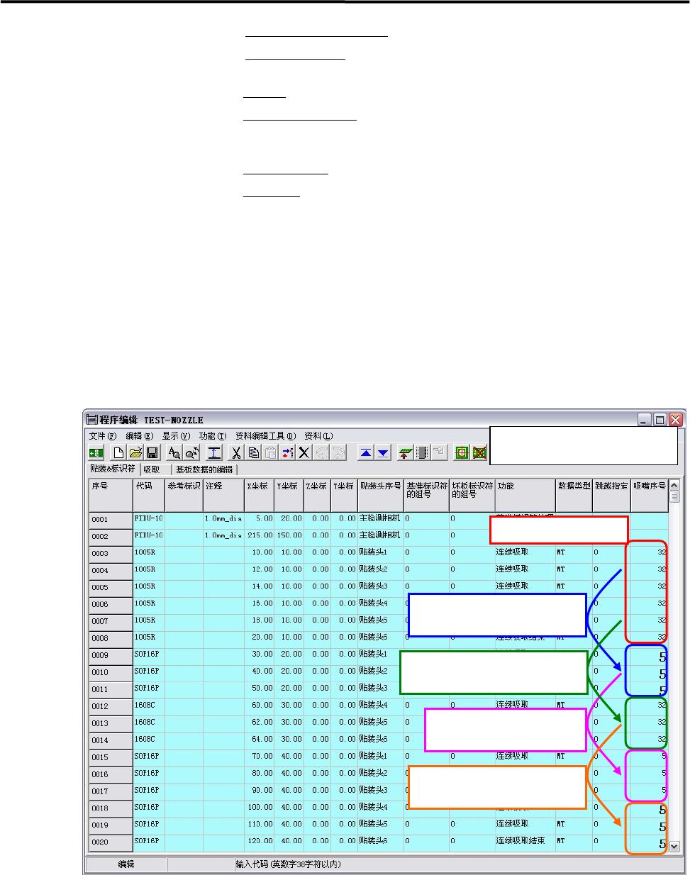 链接显示,在该画面中不能进行输入。另外,在需要进行吸嘴交换时,