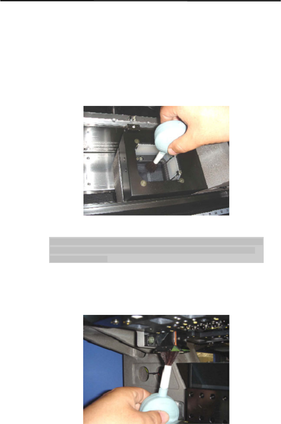 operation. However, if it gets dirty, blow air using blower brush from the bottom of the teach camera in