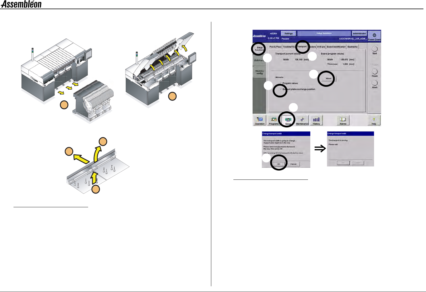 ’support plates exchanges position’ (d), followed by ’move’(e).