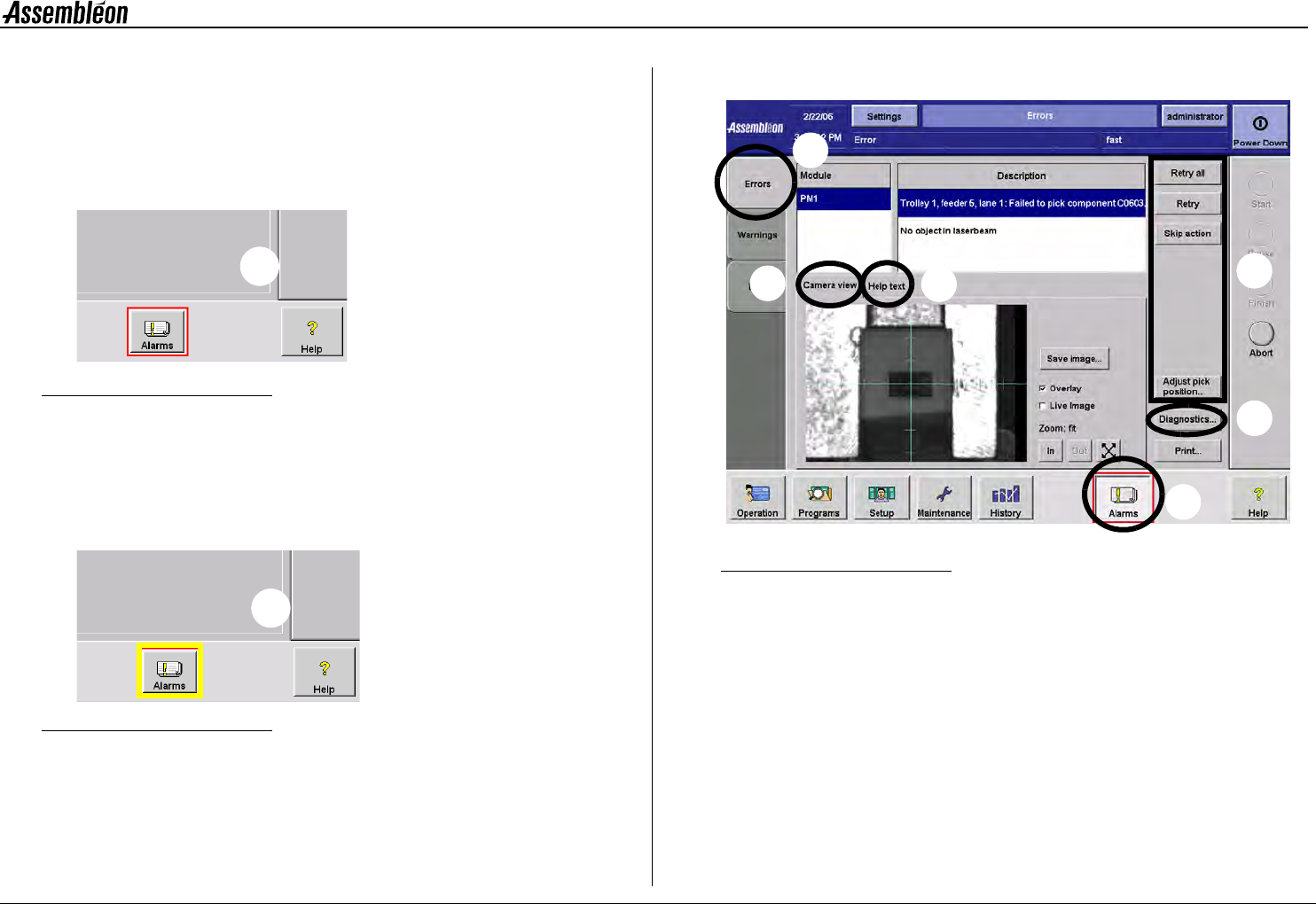 4022 593 51894 Operatin g Man ual 09.01 AX-301/501, AX-3/5 42 10 CHAPTER 10 Err or Handling 1 0 . 1 E r ro rs a n d wa r n i n g s , re co g n i t i o n A colour ed border sh own ar ound th e alarm button in dicates a ma…