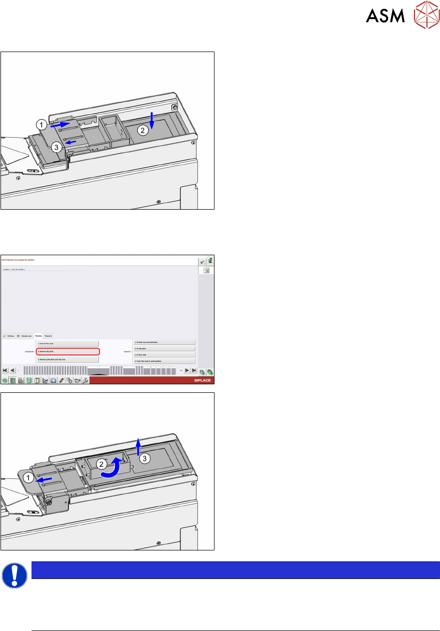 5 Cleaning 5.2 Removing the parts to be cleaned User Manual SIPLACE Linear Dipping Unit E 12/2018 61 (1) The LDU moves the squeegee over the dip plate. (2) The lift axis is lowered and the flux tank is released. (3) The …