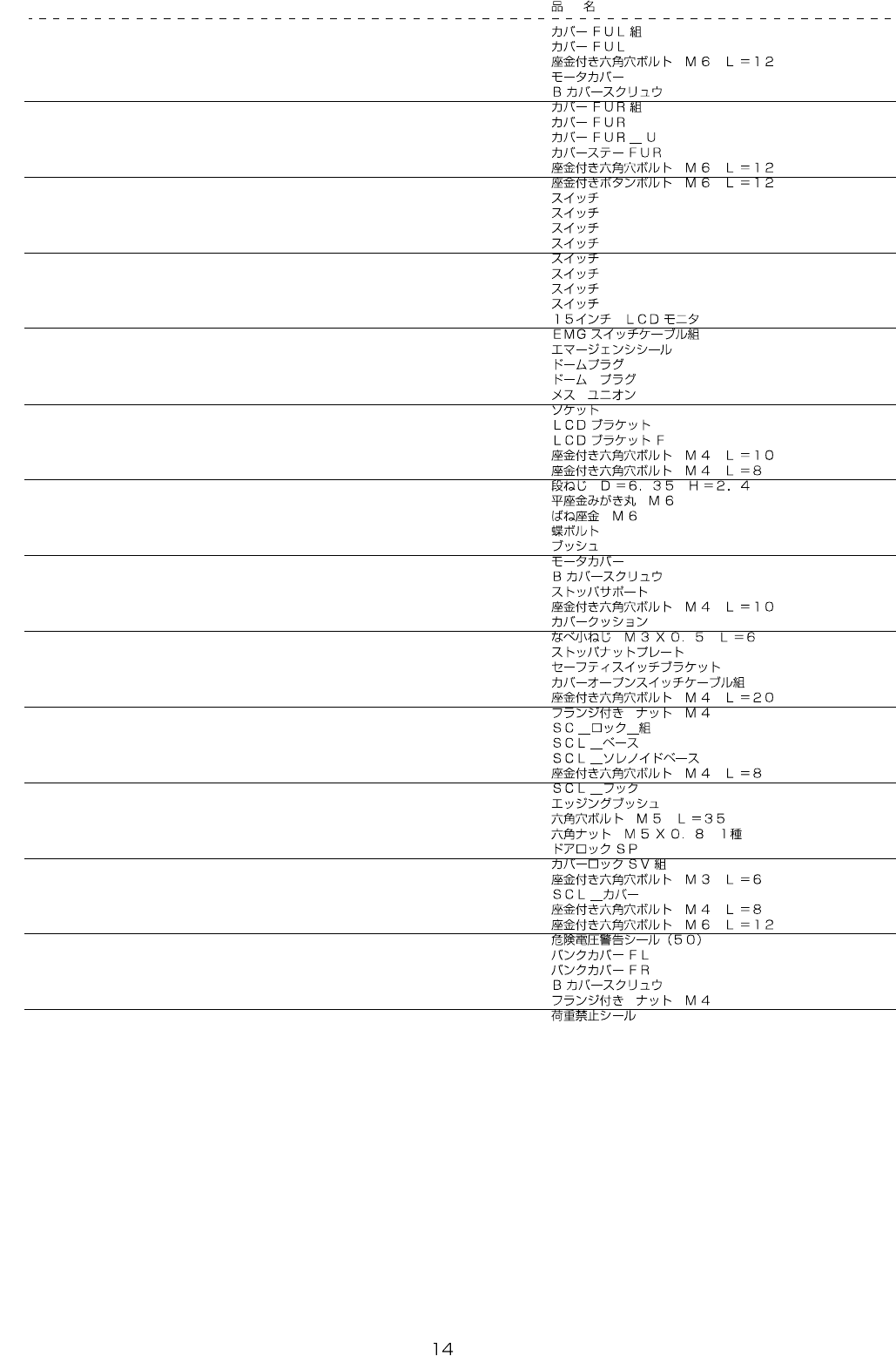 REF.NO NOTE PART NO D E S C R I P T I O N Qty