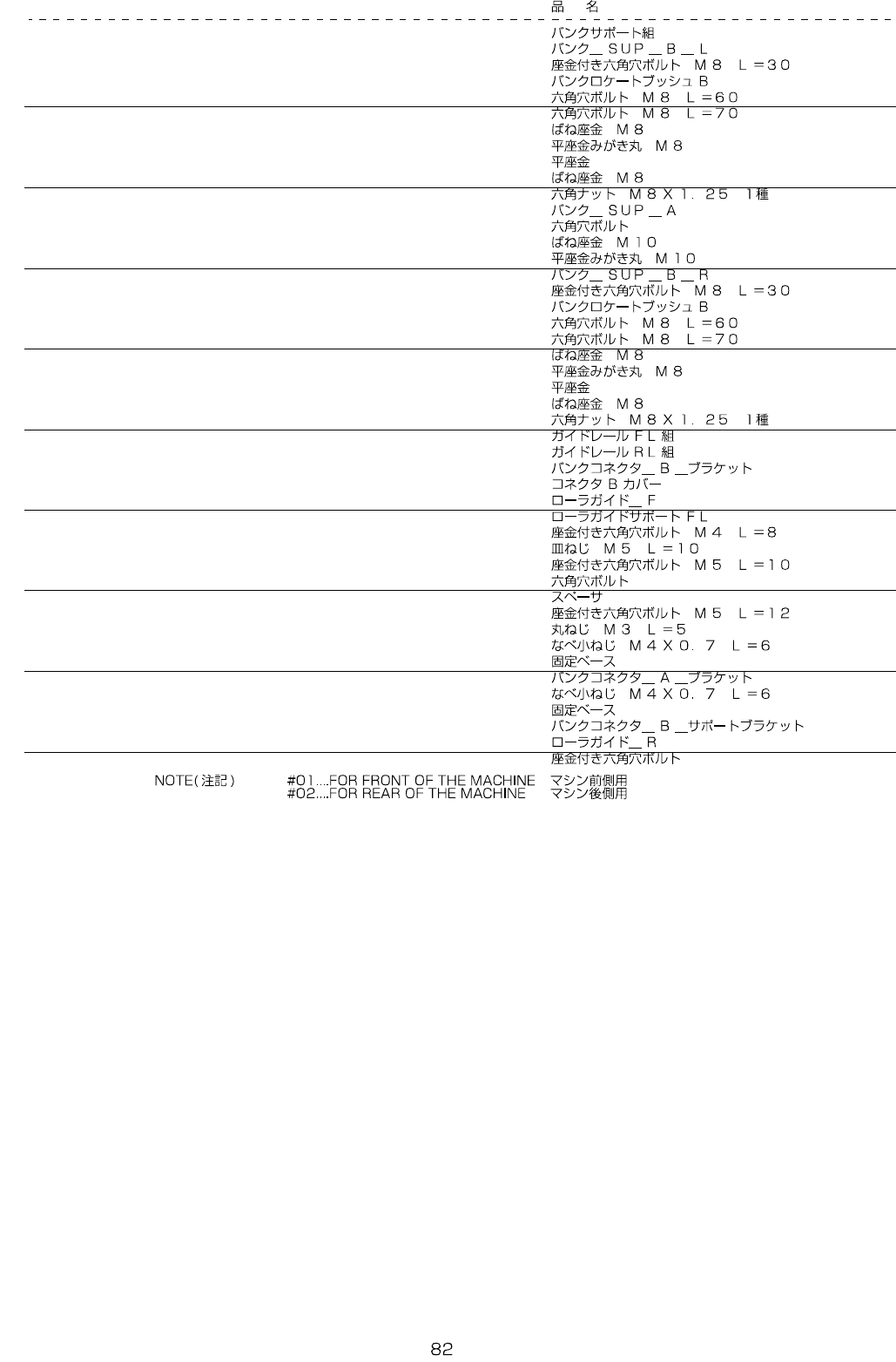 REF.NO NOTE PART NO D E S C R I P T I O N Qty