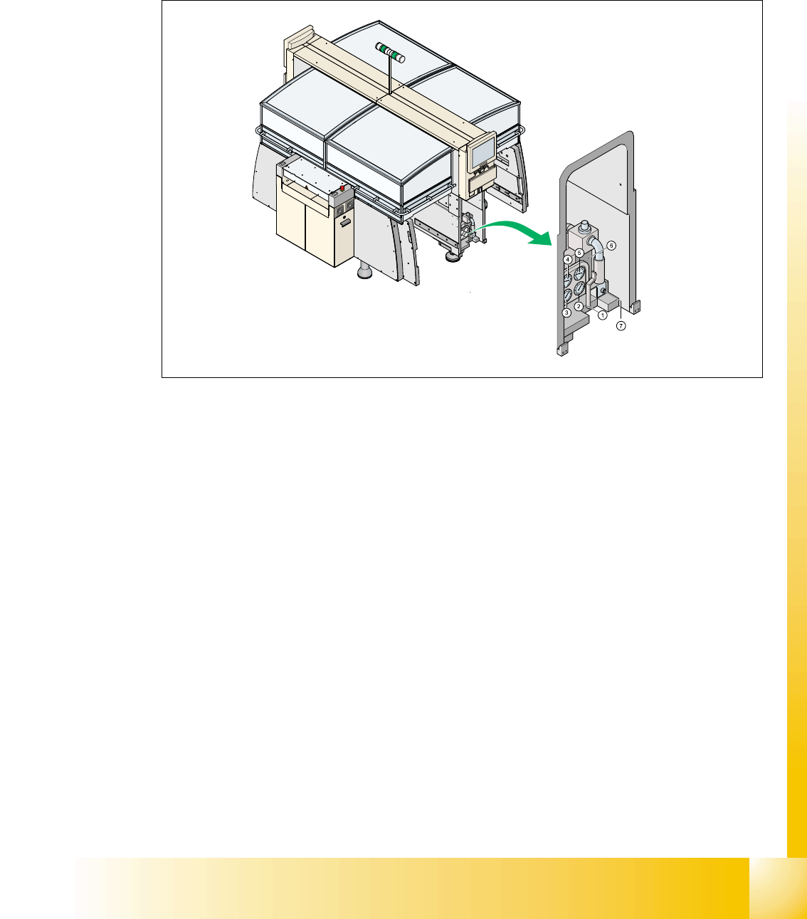 1 - 35 S tudent Guide SIPLACE HF/HF3 Edition 09/2005 4 Servic es to the machine 35 4.3.3 Pneumatic unit The pneumatic unit is mounted on a compact slide- in module, and located on the right side of the middle section . A…