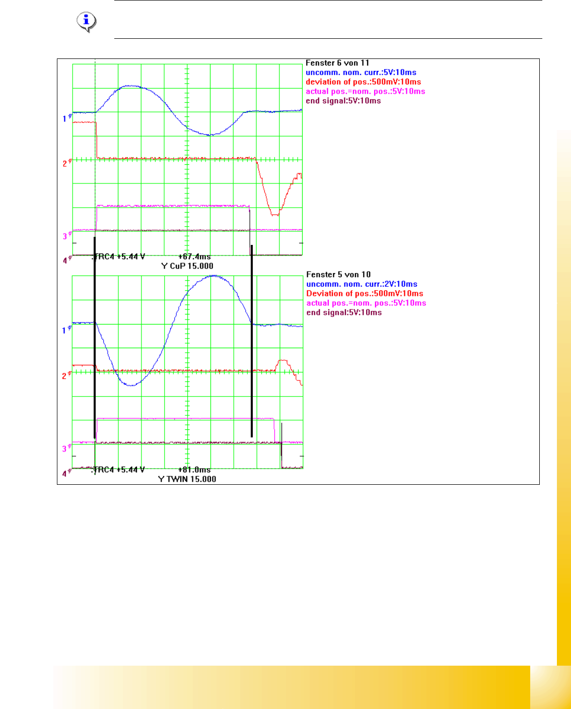 (3) actual pos. is nominal position signal and end signal at the same time following overshots smaller than