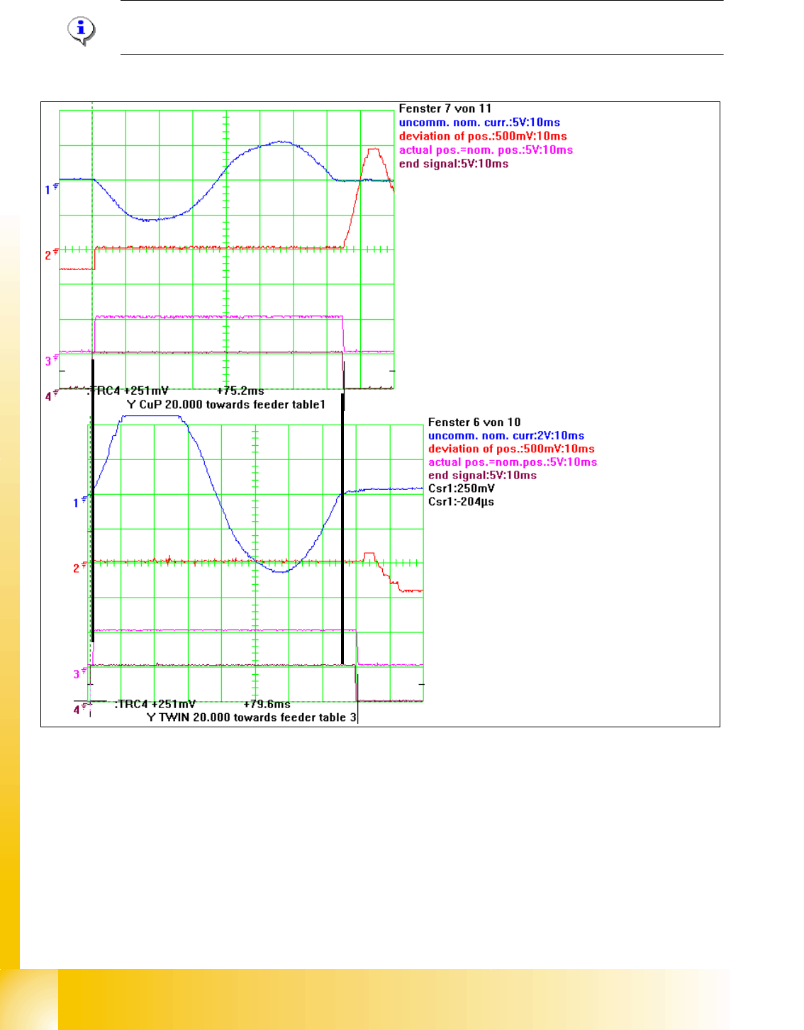 (3) actual pos. is nominal position signal and end signal at the same time following overshots smaller than