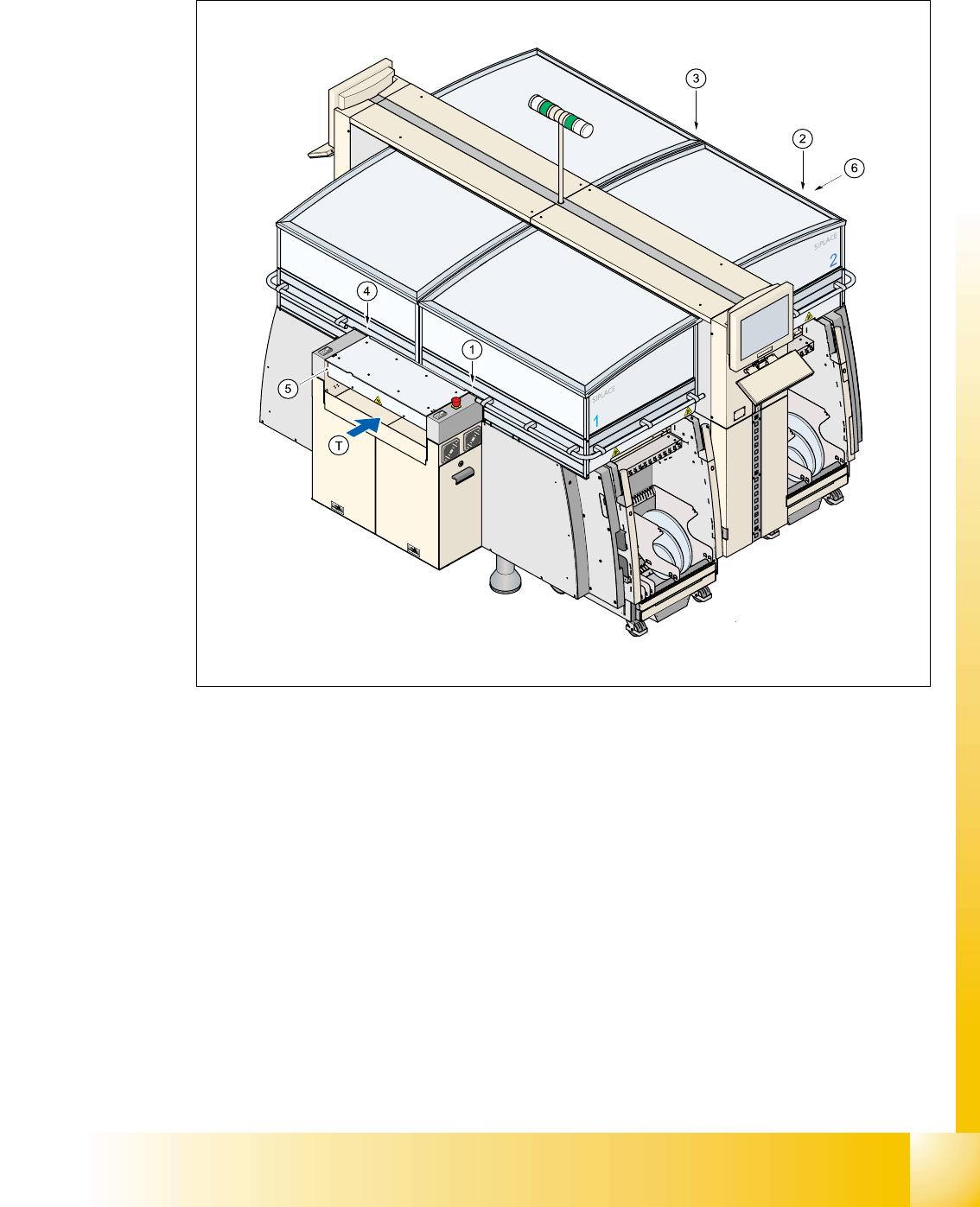 1 - 1 1 S tudent Guide SIPLACE HF/HF3 Edition 09/2005 1 Operational safety 11 1.3.1.2 Position of protective switches on the placem ent machine Fig. 1.3 - 2 Position of protective switches on the placement machine 1. Pro…