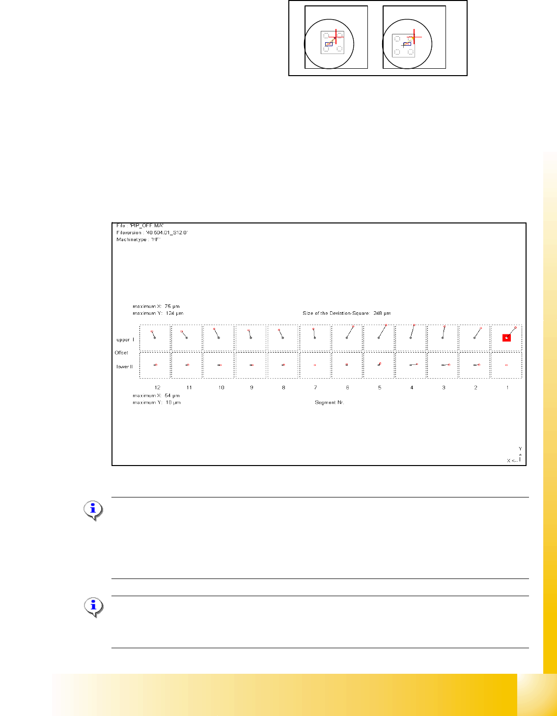 The segment offset II (bottom) should not be larger than +/- 150µm. The deviation of the segments
