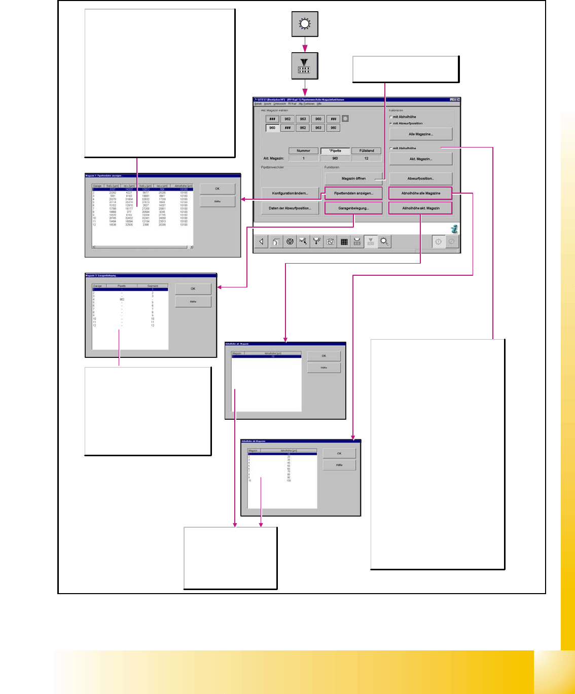 aktuelle z-Höhe der Pipette in jedem Magazin