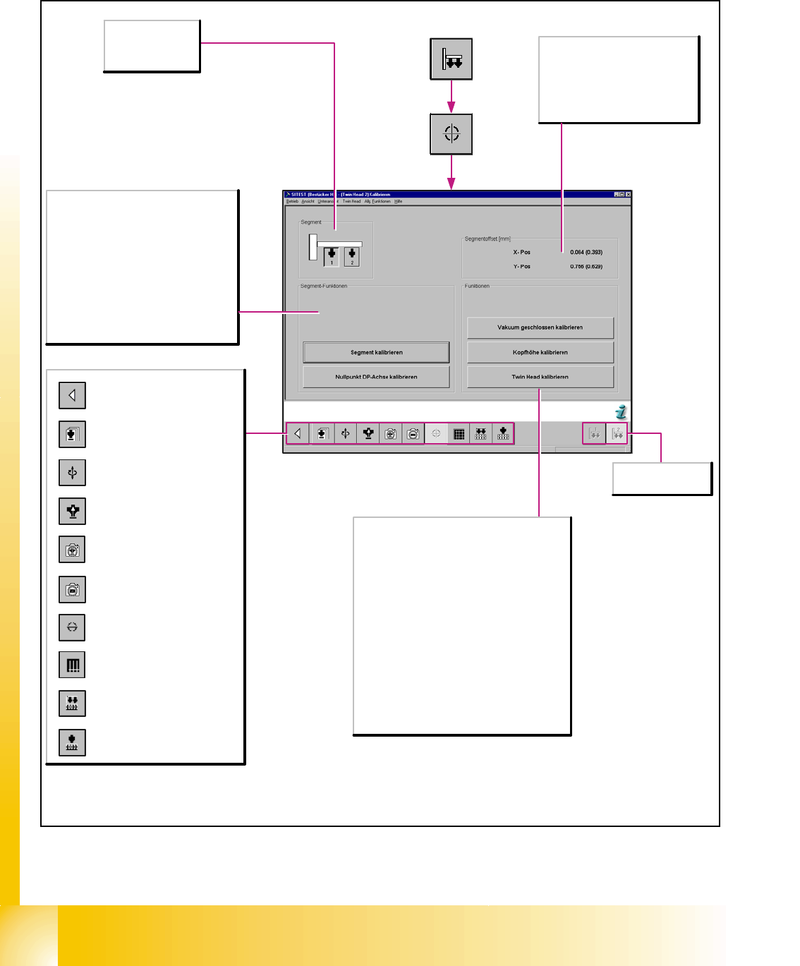 1 - 28 S tudent Guide SIPLACE HF/HF3 10 Sitest Edition 09/2005 28 10.2.7.5 Calibration functions T win head Wählt den Twin Head 1-2 aus. Aufruf der Ansic ht für die Funkti onen des T win Head. Aufruf der Ansic ht für die…