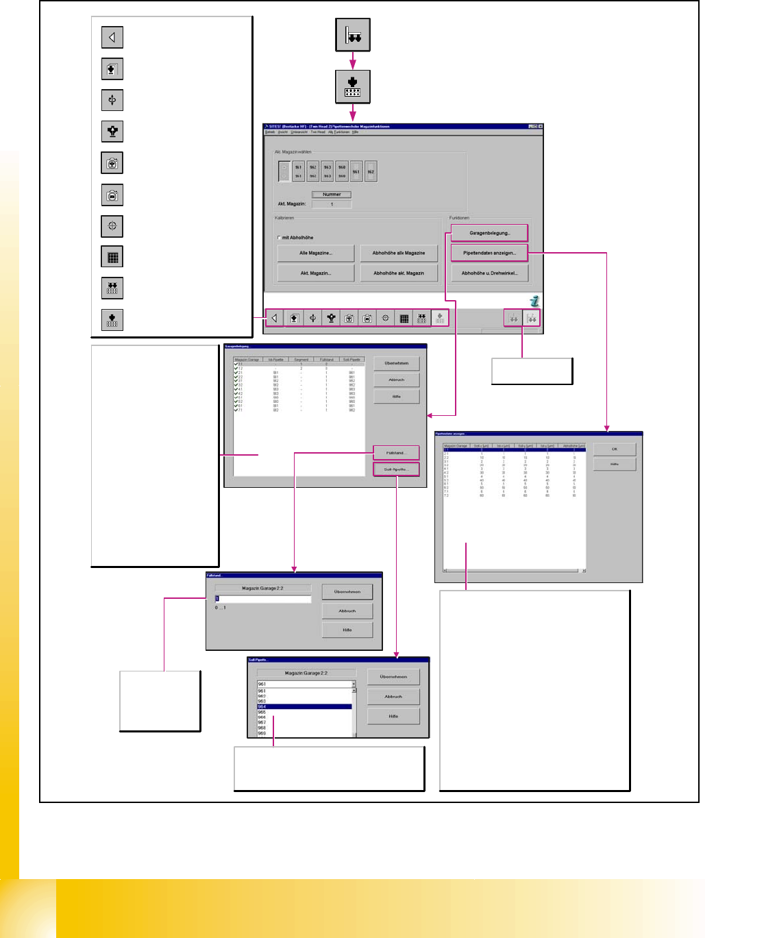 Öffnet das Dialogfenster Abholhöhe akt. Magazin, in