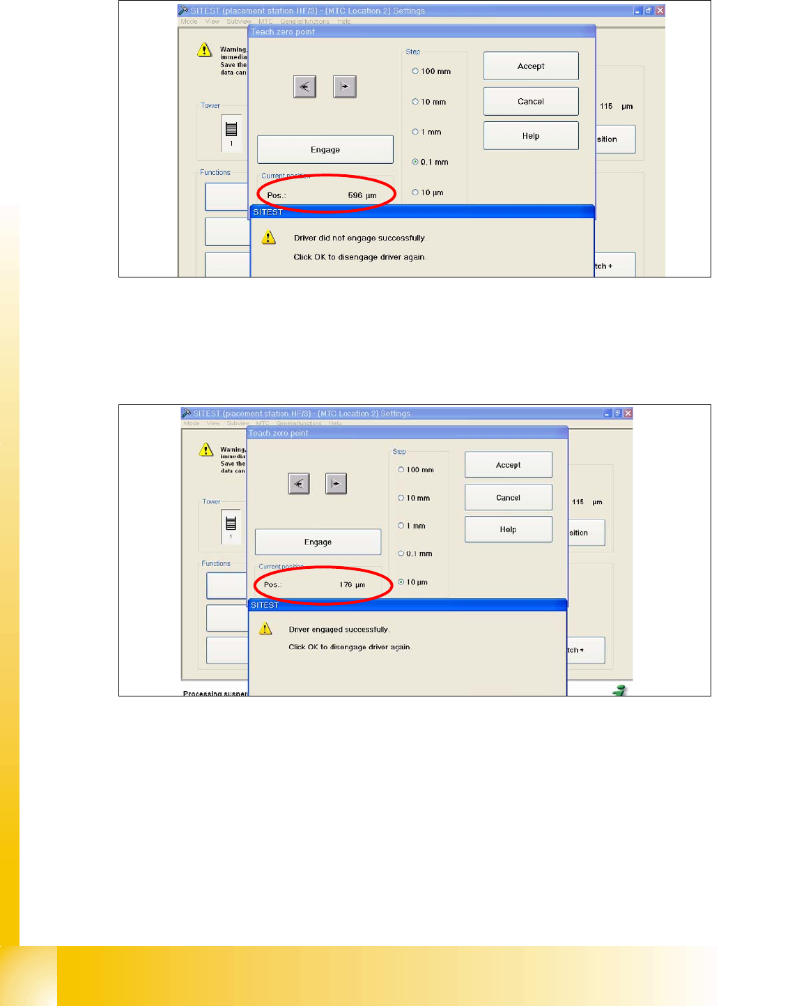 1 - 40 S tudent Guide SIPLACE HF/HF3 1 1 MTC 2 Edition 09/2005 40 Fig. 1 1.3 - 4 Maximum position ➠ Now calculate the middle position at which the driver will always engage. e.g. |-257| + 596 = 85 3 divided 2 = 426µm 426…