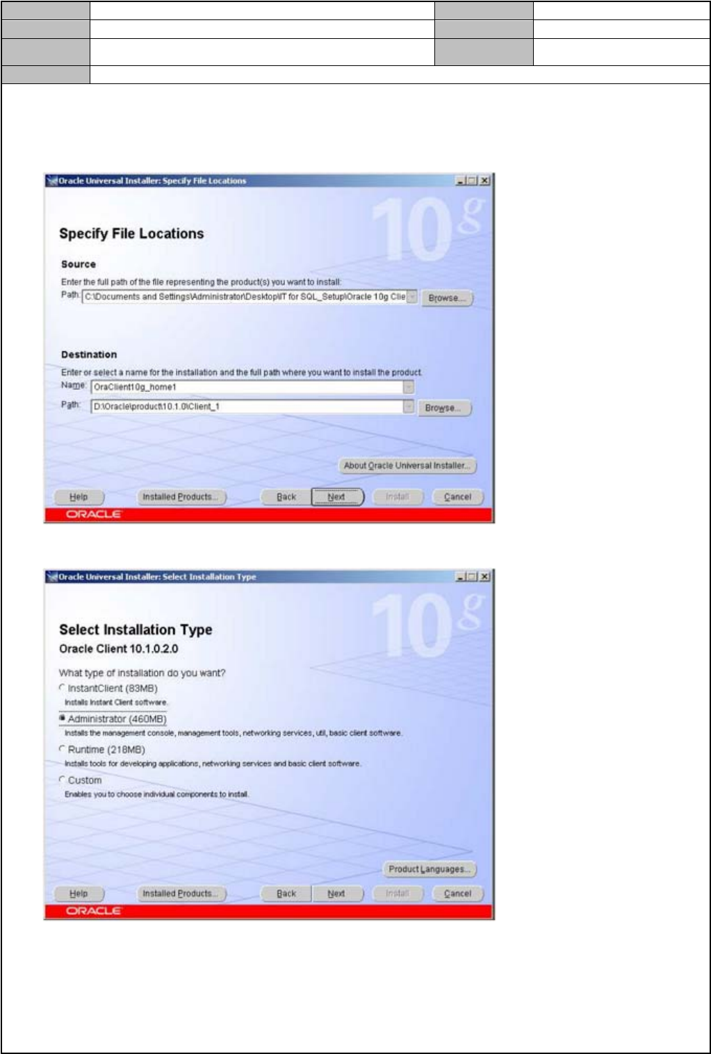 Path : C:\Oracle\product\10.1.0\client_1