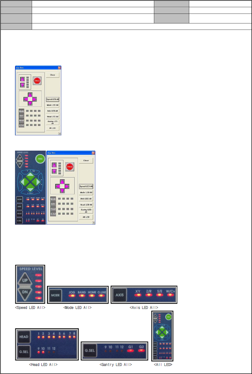 Model DECAN Series Company SAMSUNG TECHWIN Module 3.12 MMI V ersion 01 Tit le 确认 JOG BOX Page 3-12-2 Note [ 确认 JOG BOX] 1. 在 MMI 选择 < Diagnosis > → <Jogbox> 2. 启动 Jogbox 的按钮时,确认 MMI 的 Jogbox 上接受信号后是否显示深灰色 3. …