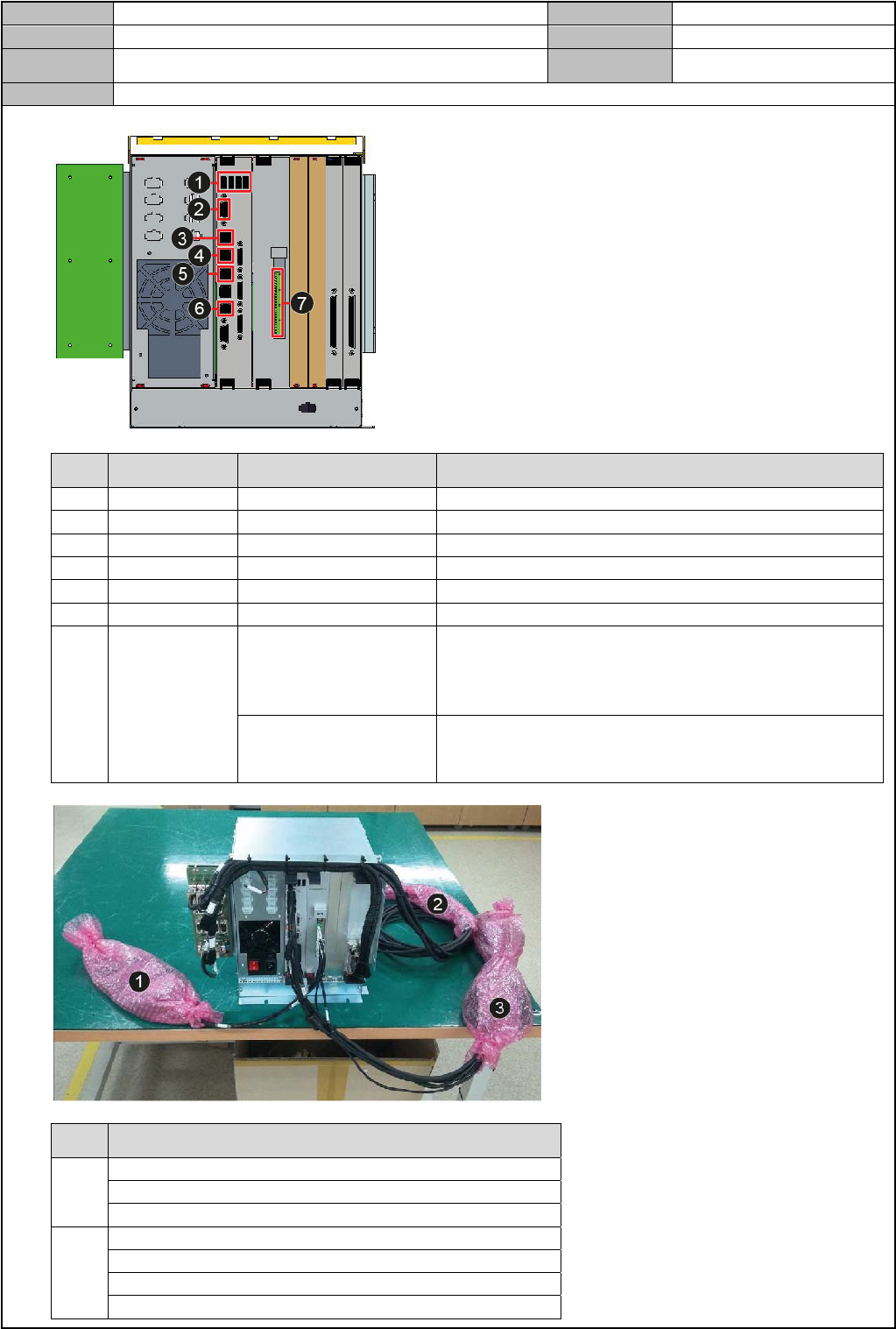 Model DECAN Series Company SAMSUNG TECHWIN Module 3.15 PC RACK V ersion 01 Tit le 组装 PC RACK Page 3-15-6 Note No. 规格 ST ART END 备注 1 3M CB-CE-3 PCIE-2 AXIO#2(Front) A 2 SM51 1_KV003-2 SBC-VGA1 F-MON 3 SM51 1_PC003 PC-232…