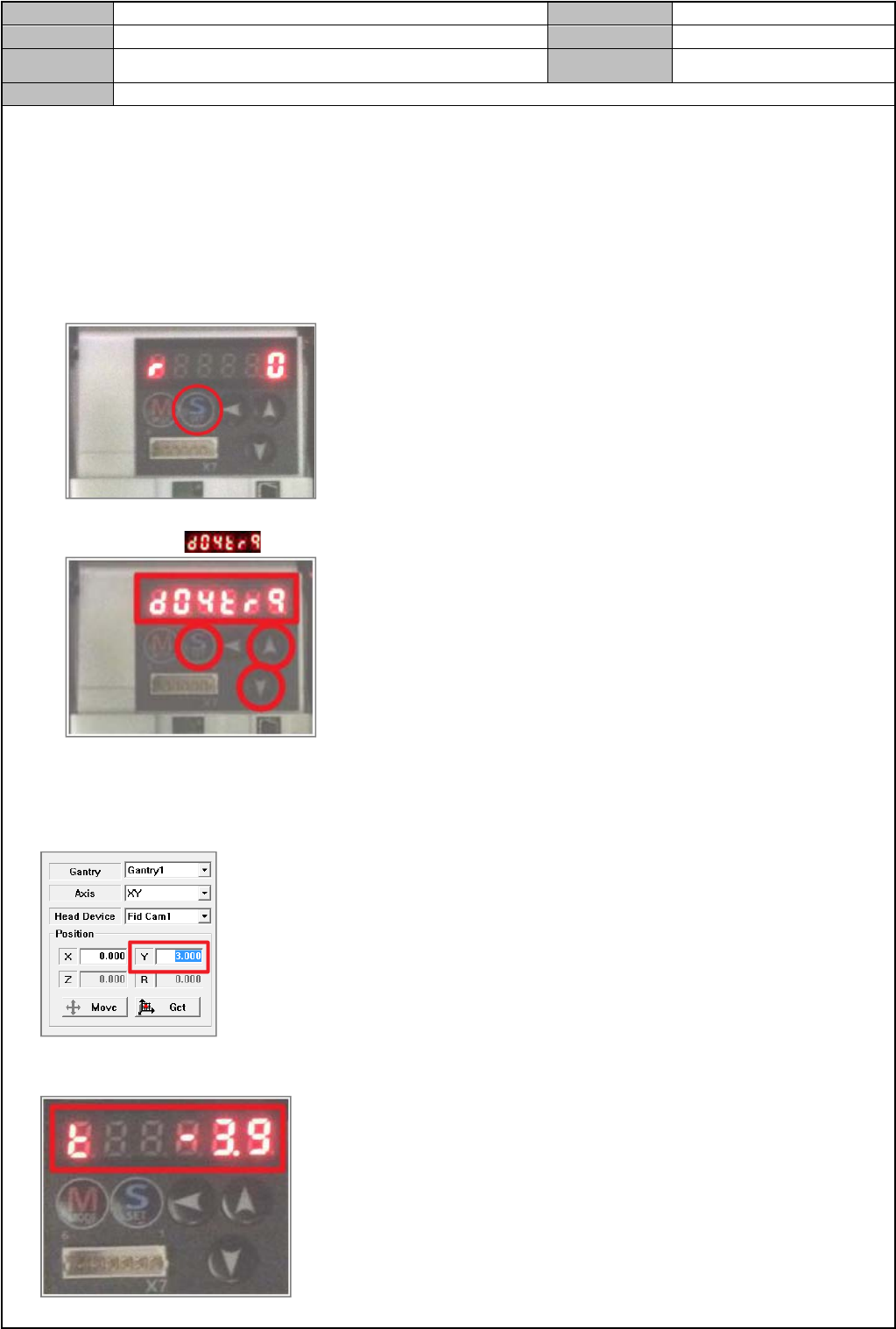 Model DECAN Series Company SAMSUNG TECHWIN Module 3.7 P ARAMETER V ersion 01 Tit le 检查 MOTOR 负荷率 Page 3-7-3 Note 6. 以相同方法 确认 6 、 9 、 12 、 15 、 18 位置的负荷率 7. 确认负荷率 后,将 Motor Driver 设定 为原来状态 - 按下 [SET] - 按下 [ △ , ▽ ] 选择 模式后…