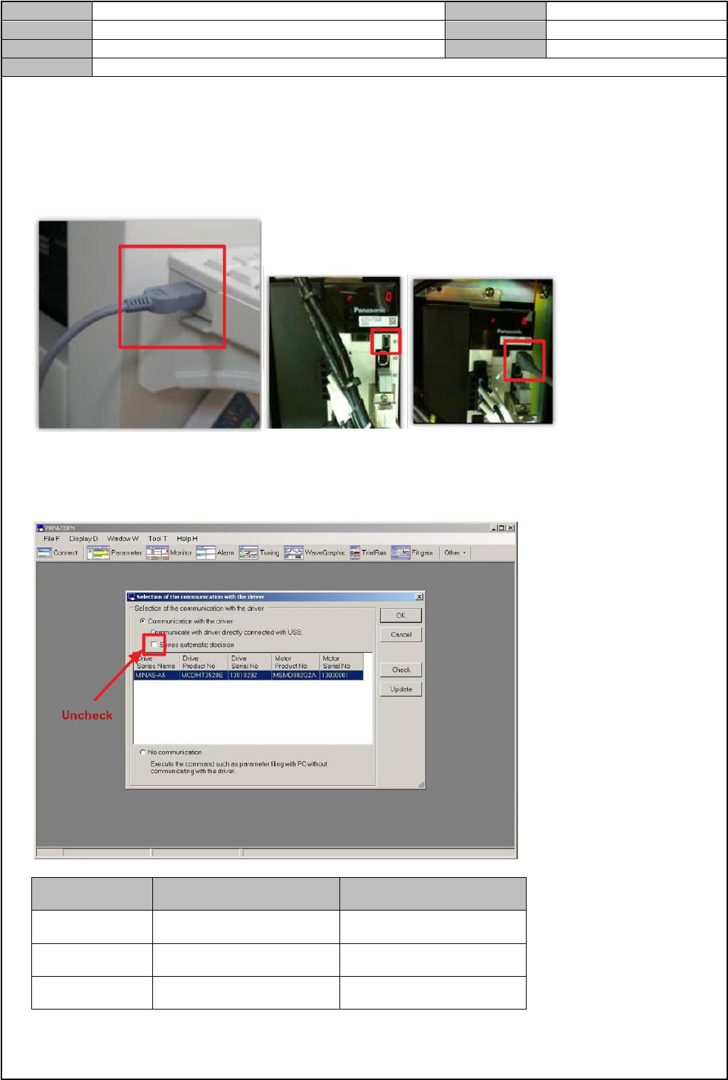 2. 用 Parameter Cable 连接 Keyboard USB Port 和 Y1 Motor Amplifier 的 X1 端子