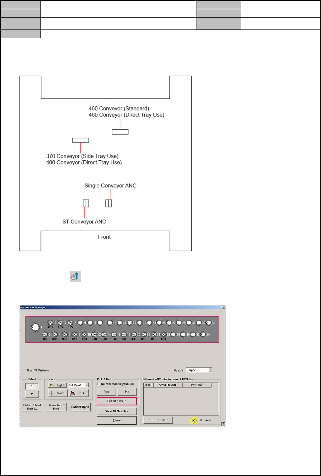 2. Head 1~10 上安装 CN040 喷嘴状态下,执行 ANC 的<Put All Nozzle>,将喷嘴位于 ANC