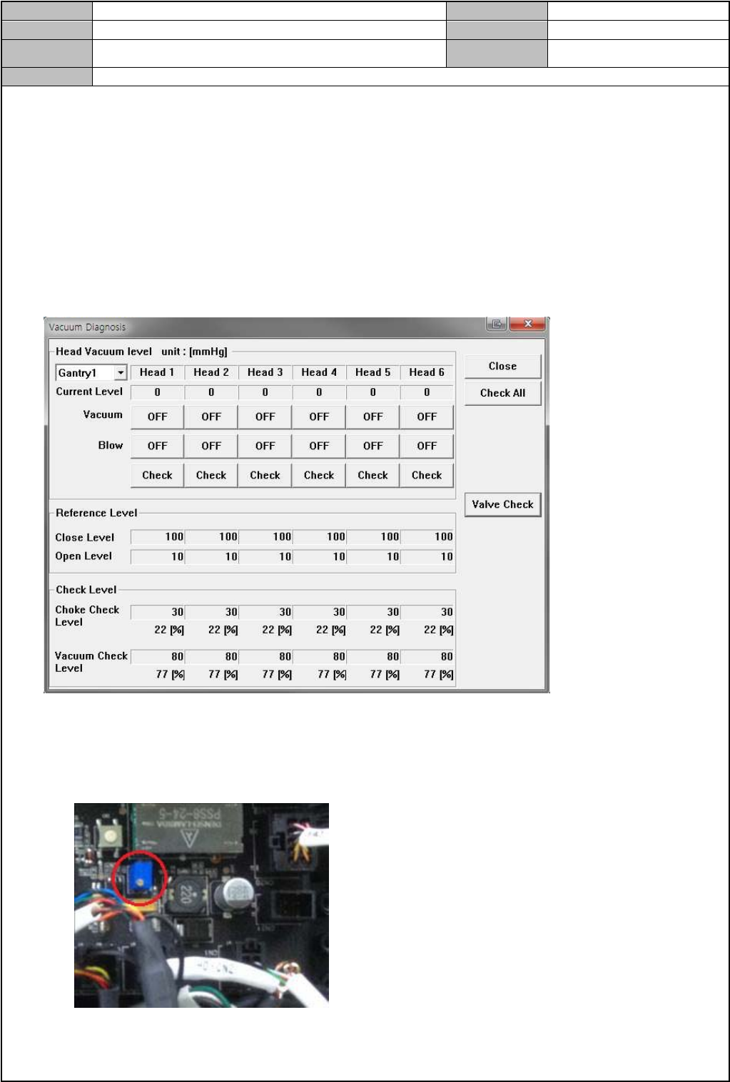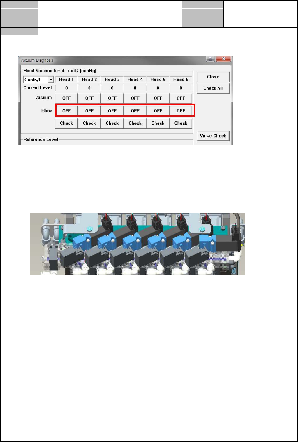 2. Blow Off 状态下,边打开/关闭各 Head 的 Vacuum,边确认是否生成 Vacuum 及其 Current 值