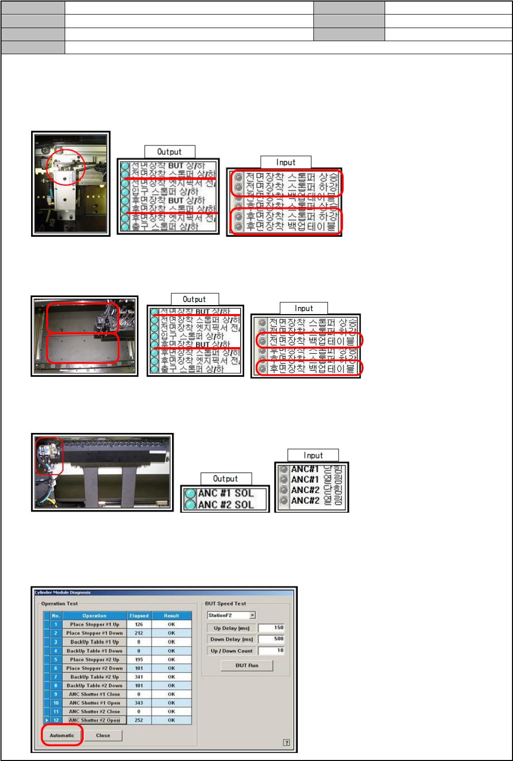 Model DECAN Series Company SAMSUNG TECHWIN Module 3.12 MMI V ersion 01 Tit le MMI IO CHECK(OUTP UT) Page 3-12-5 Note [MMI IO CHECK(OUTPUT)] 确认前 / 后面安装制动器上 / 下启动 点击 IO 窗口的 < 前 / 后面 安装制动器上 / 下 > ,确认启动及输 入信号感应 确认前…