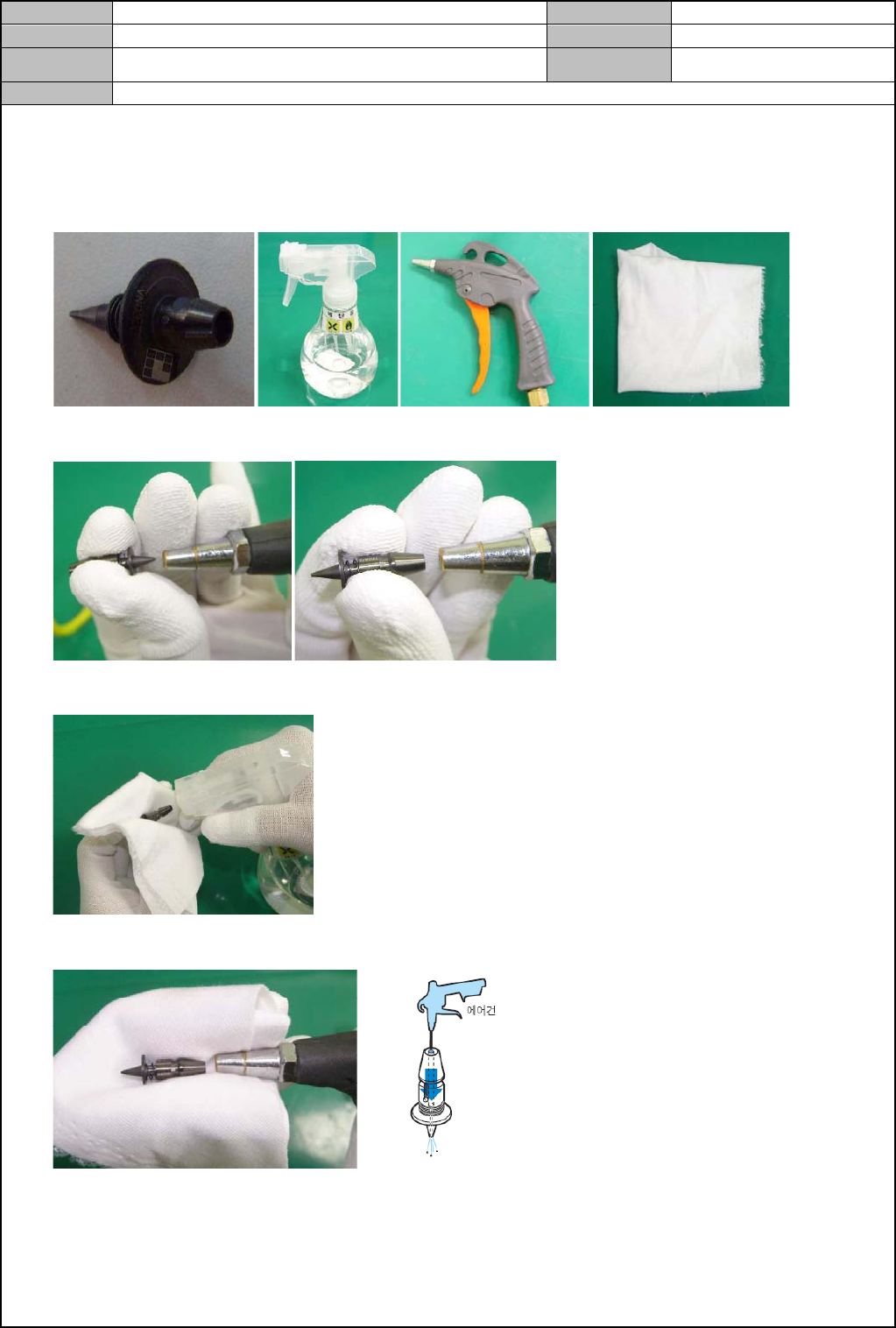 4. 用抹布擦拭喷嘴,用气枪吹出