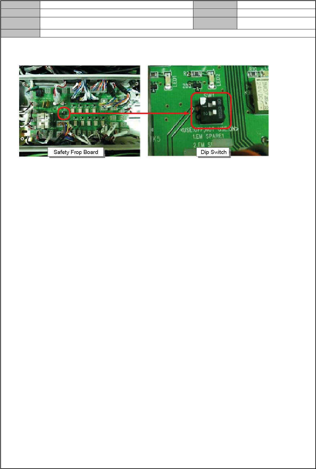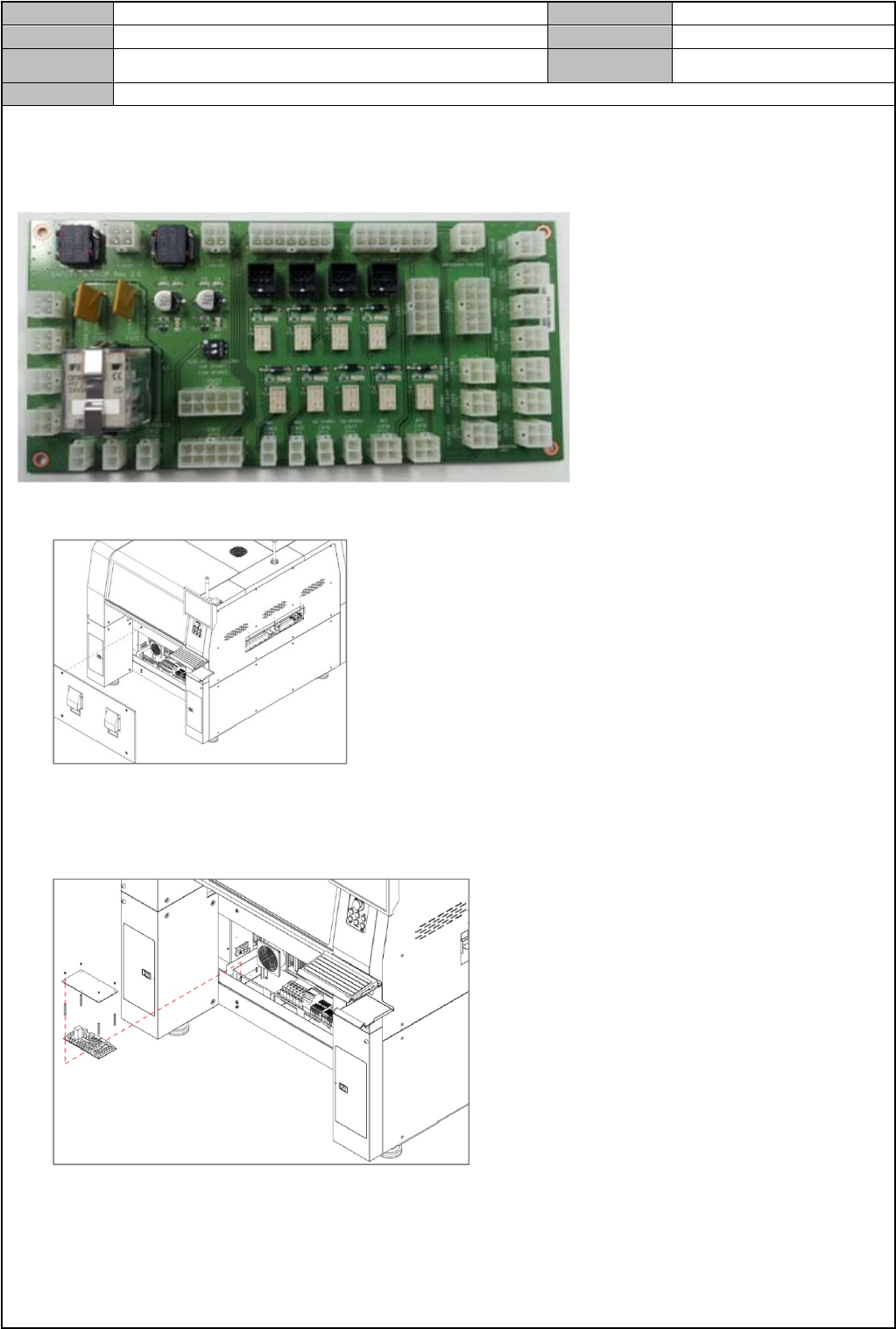 Model DECAN Series Company SAMSUNG TECHWIN Module 3.2 BOARD V ersion 01 Tit le 更换 SAFETY FROP BOARD Page 3-2-12 Note [ 更换 SAFETY FROP BOARD] Safety Frop Board 用于控制设备的紧急停止 、门联锁等安全装置,还将控制 DC 电 源分配 1. 拆卸设备后盖板 2. 拆卸连接到电路板的电缆…