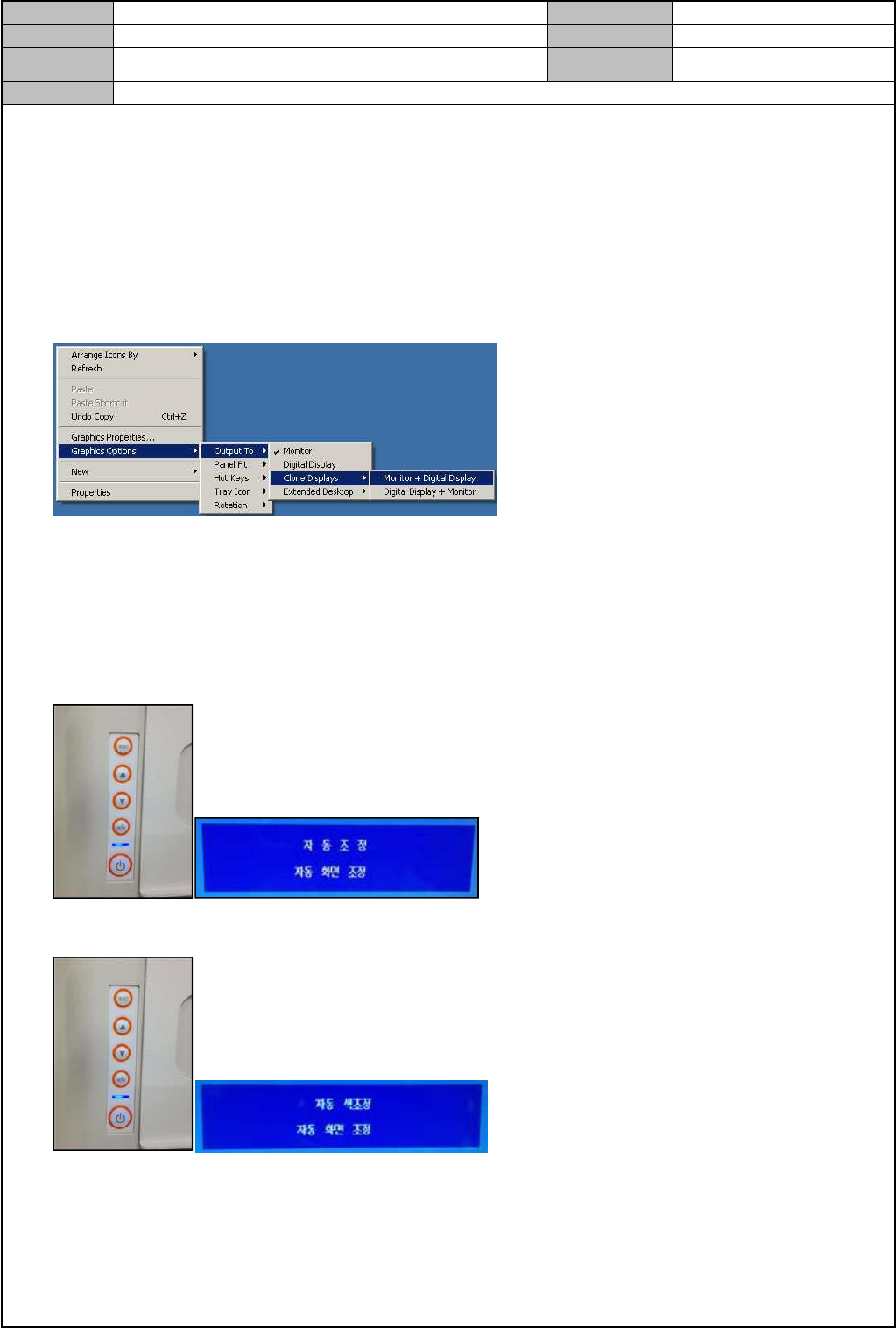 2. <Graphics Options> → <Output To> → <Clone Displays> → 选择<Monitor + Digital Display>
