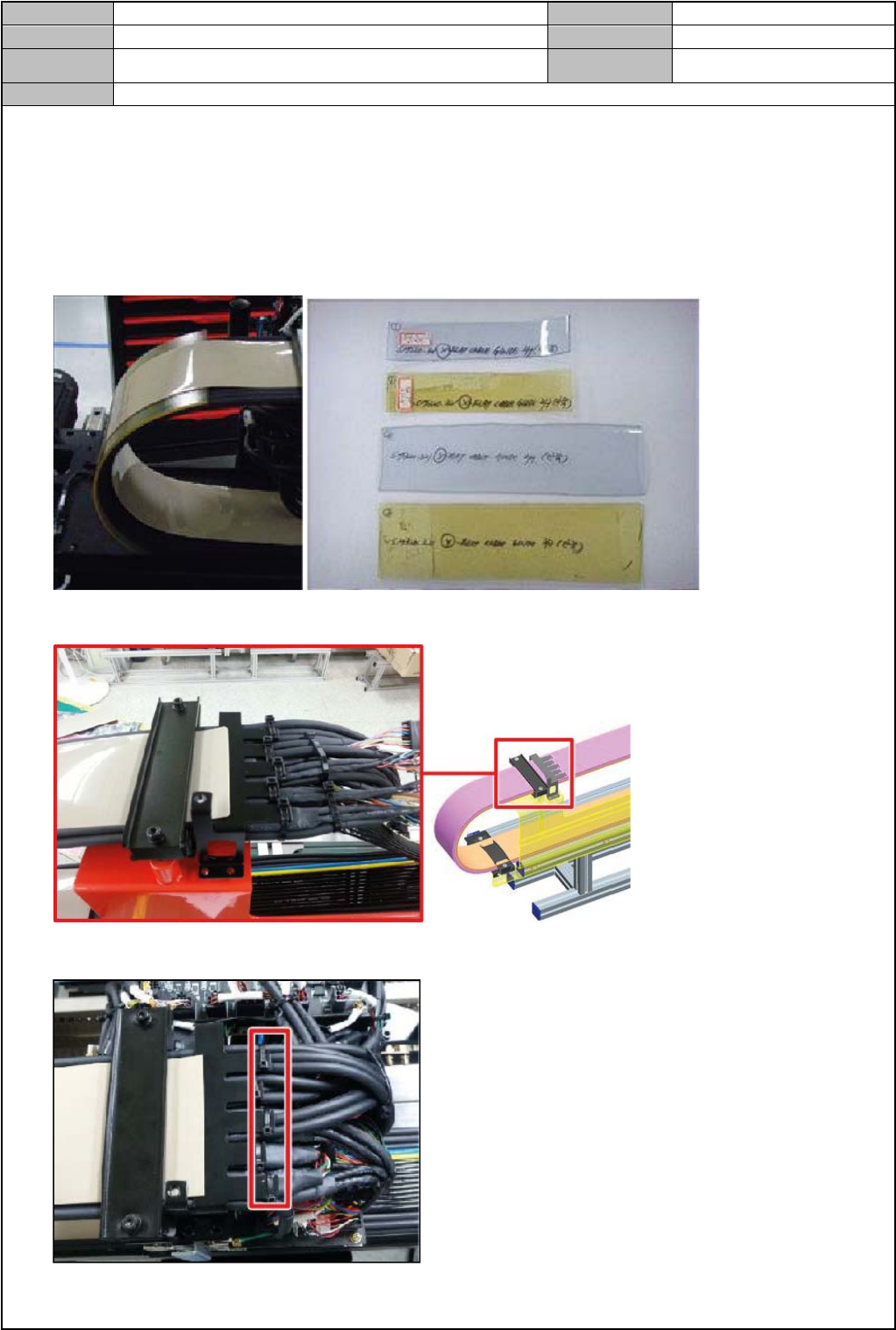 Model DECAN Series Company SAMSUNG TECHWIN Module 3.16 X-FRAME V ersion 01 Tit le 组装 FLA T CABLE Page 3-16-3 Note [ 组装 FLA T CABLE] 1. 注意组装时发生气动管道被 Flat Cable Guide 的 Rubber 压下 2. Flat Cable 内侧的 Air- 软管和 Guid e 之间,插入夹具 (…
