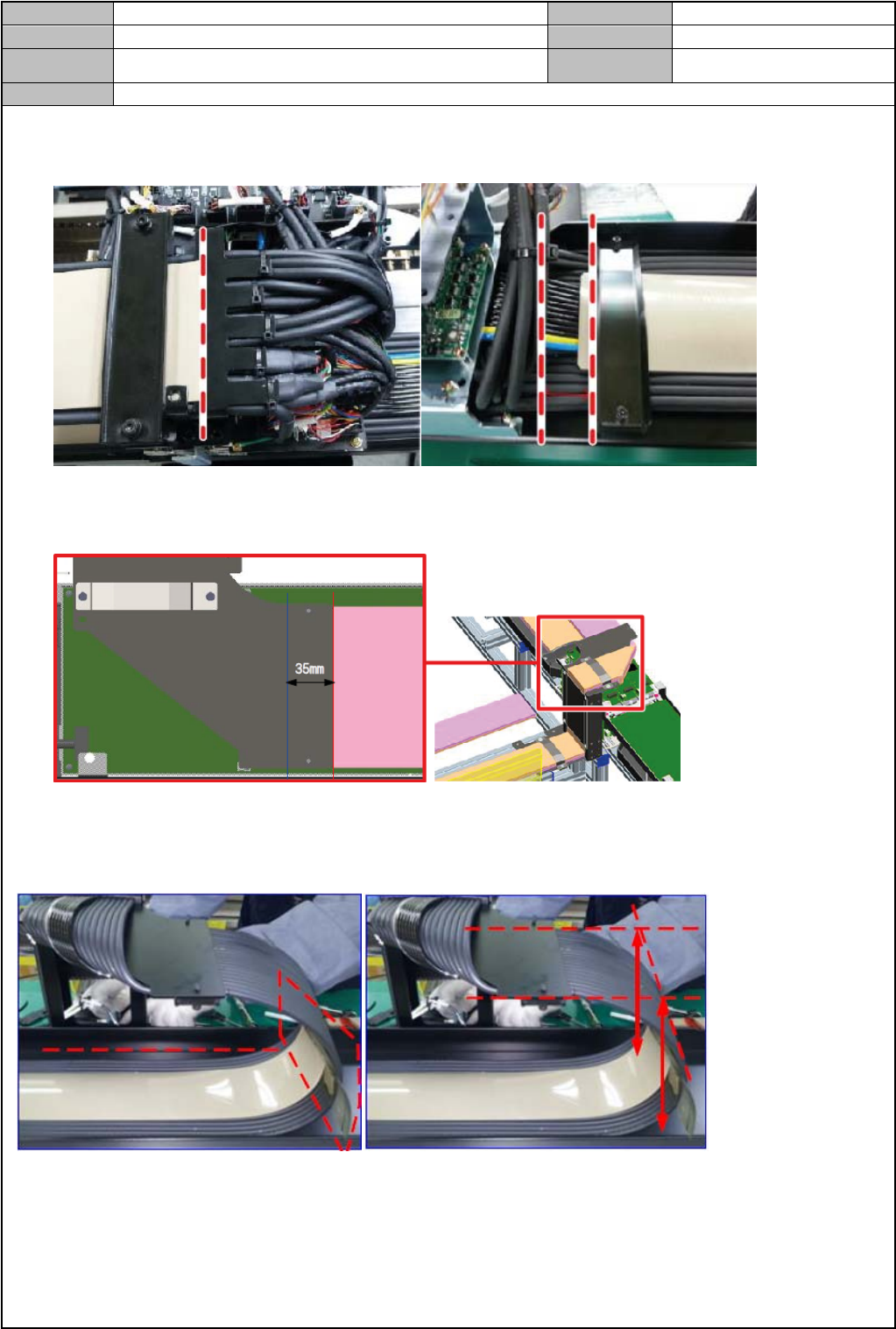 6. 固定托架时,在 Flat Cable 的标记线的 35mm 之处再表示其标记线,组装为其标记线与 BKT 末端