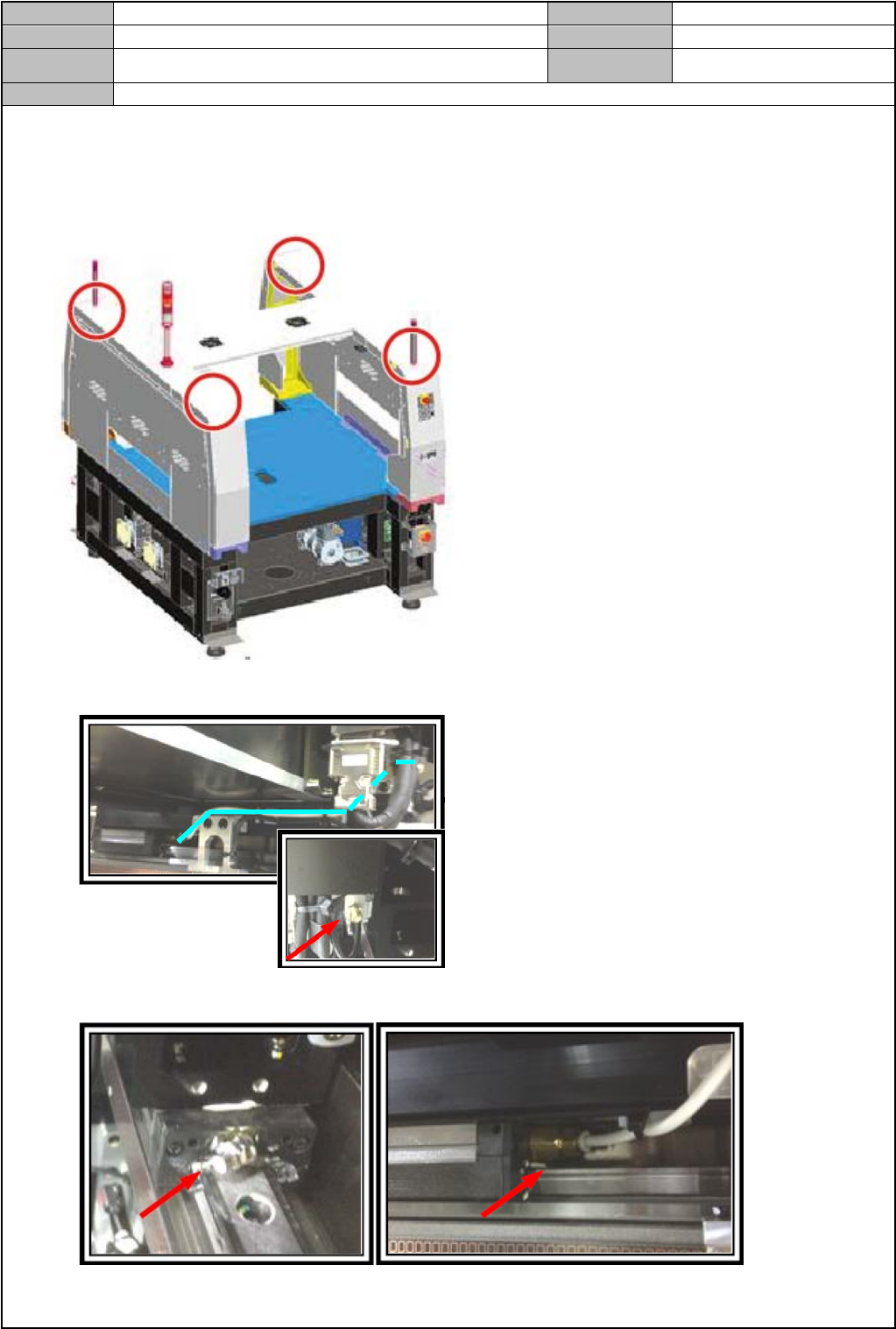 Model DECAN Series Company SAMSUNG TECHWIN Module 3.17 Y -FRAME V ersion 01 Tit le 注入润滑脂 Page 3-17-3 Note [ 注入润滑脂 ] 在四处标注位置注入润 滑脂 确认软管的布线区间是否折弯或 是否与配件连接好后,注入润滑脂 LM Guide 的润滑脂软管 上,注入润滑脂直至达到配件