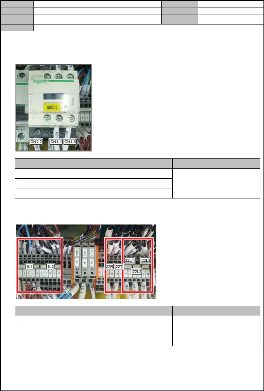 Model DECAN Series Company SAMSUNG TECHWIN Module 3.19 ELECTRIC DEVICE V ersion 01 Tit le 电压 CHECK TEST Page 3-19-21 Note Ready ON 时,启用的交流、直流 电源 1. 测定 MC #1 的电源 检查地方 检查标准 MC#1 的电源 CHECK : MC1-2 , MC1-4 AC 220V±10 MC#1 …