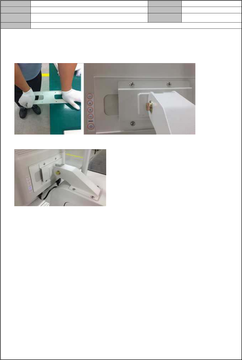 1. 将显示器支架的中间部分稍微折弯后,与支架臂一起安装于显示器