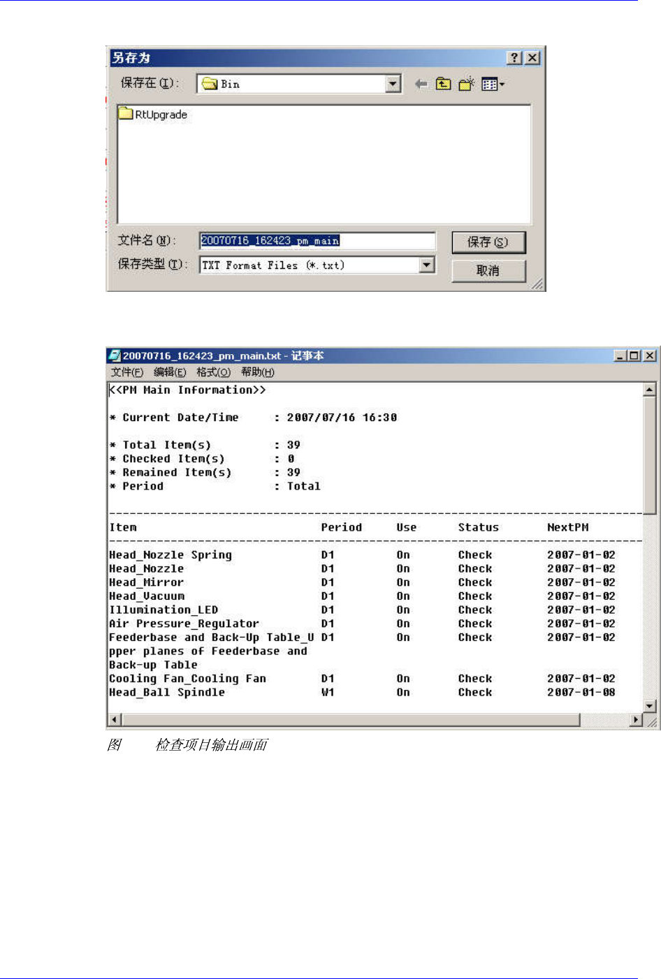 . PM Manager A-1 1 A.5. Setup A.5.1. 更改检查周期 各检查项目的检查周期可 在 Setup 画面中进 行更改。 如下图需要更改检查周期 的 Ite m 的 Ti me Unit 项目中点击 组合框按钮后更改检查 周期(日、周、月) 。 A-1 1 超过周期后,设备会根据 检测周期自动显示 W arning 或者 Error 。 A.5.2. 检查周期初始化 更改的检查周期进行初始 化时点击对应 Ite…