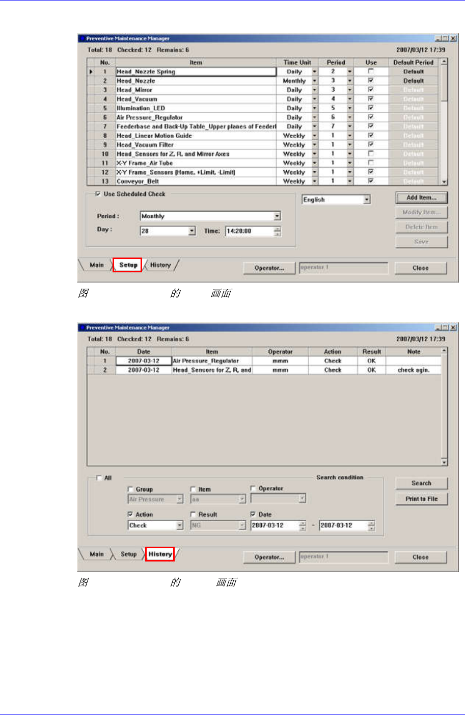 PM Manager 由 Main 画面, Setup 画面, History 画面构成。最初执行 PM Manager 时