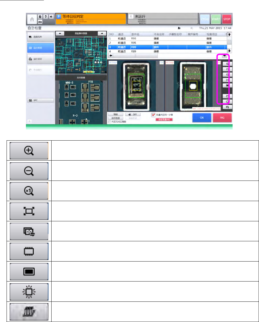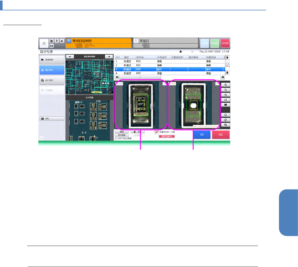 可在半自动模式下执行。在运转过程中,显示判定部件的良品图像,经检查的图像,可进行目测判定。