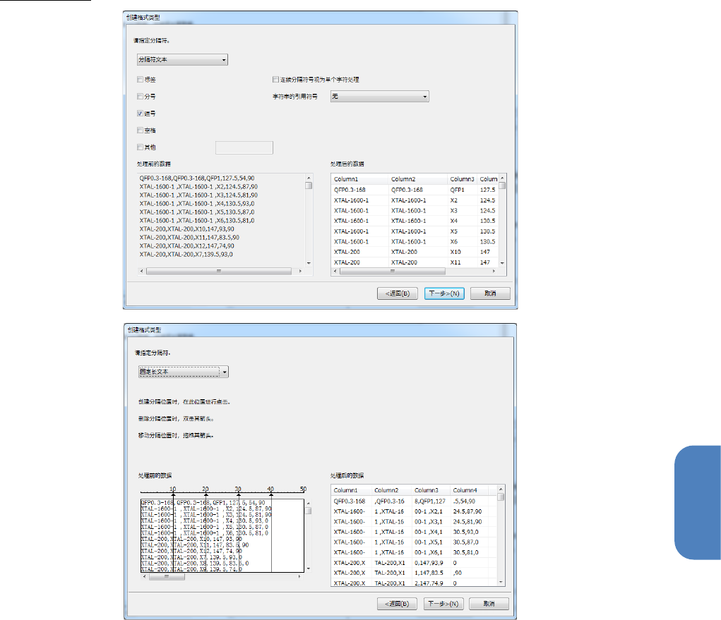 数据显示在「处理前的数据」处,被分隔符分隔的列的数据显示在「处理后的数据」处。