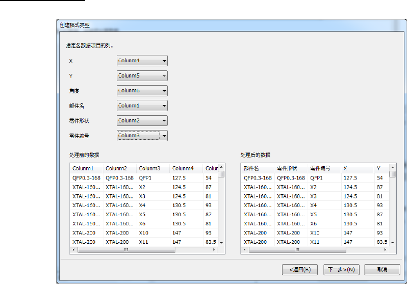 在「处理前的数据」处显示前页处理的 CAD数据,在「处理后的数据」处显示变更了列名的数据。