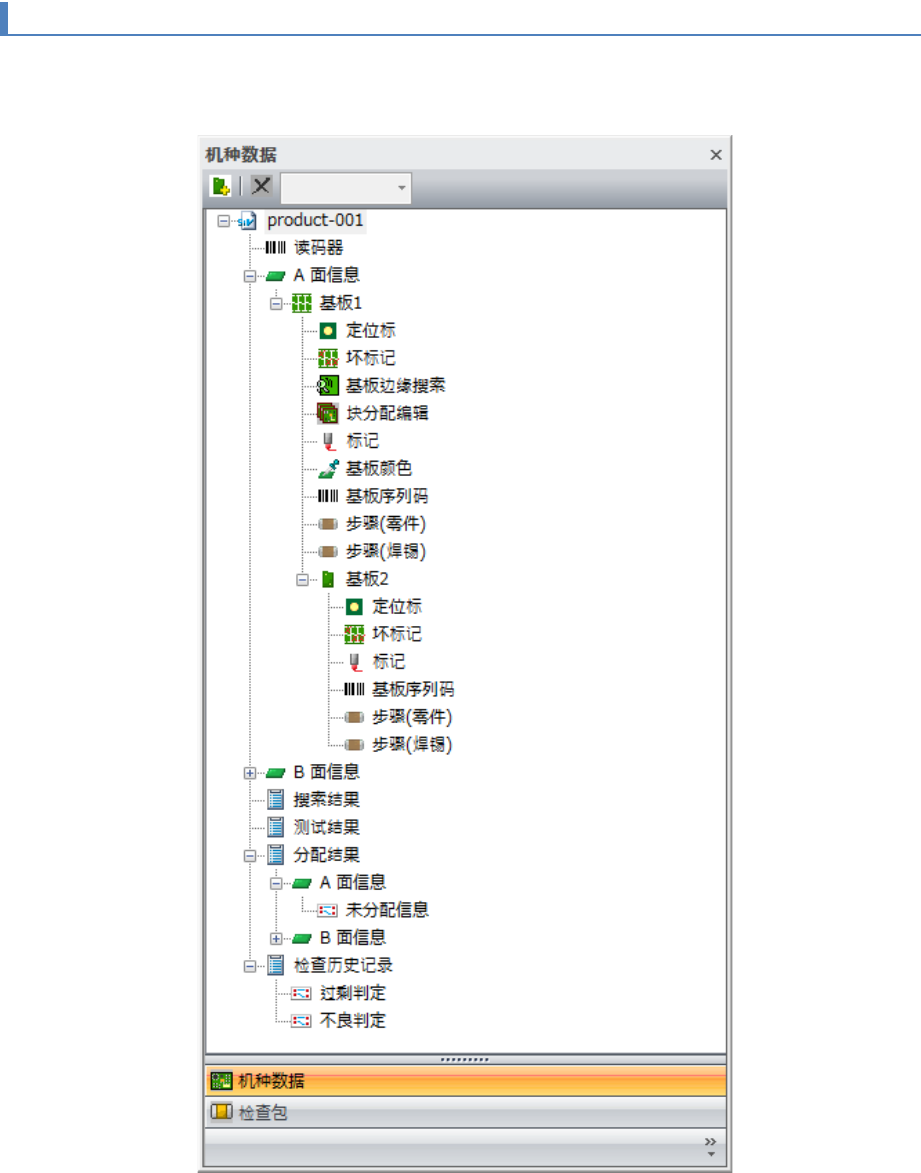 在机型数据树形图上可以确认机型数据的结构。