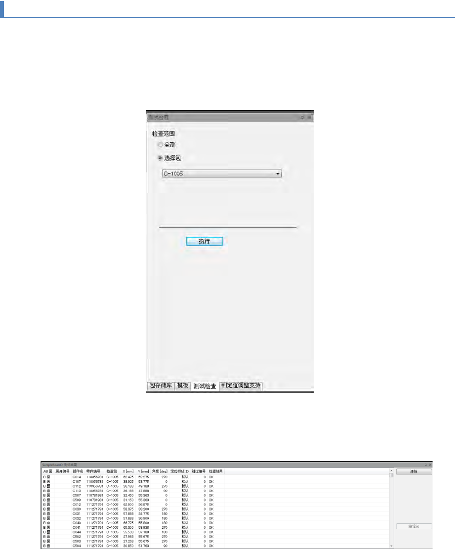 根据指定条件执行测试检查,测试检查结果将显示在[测试结果]画面上。点击[编辑包],