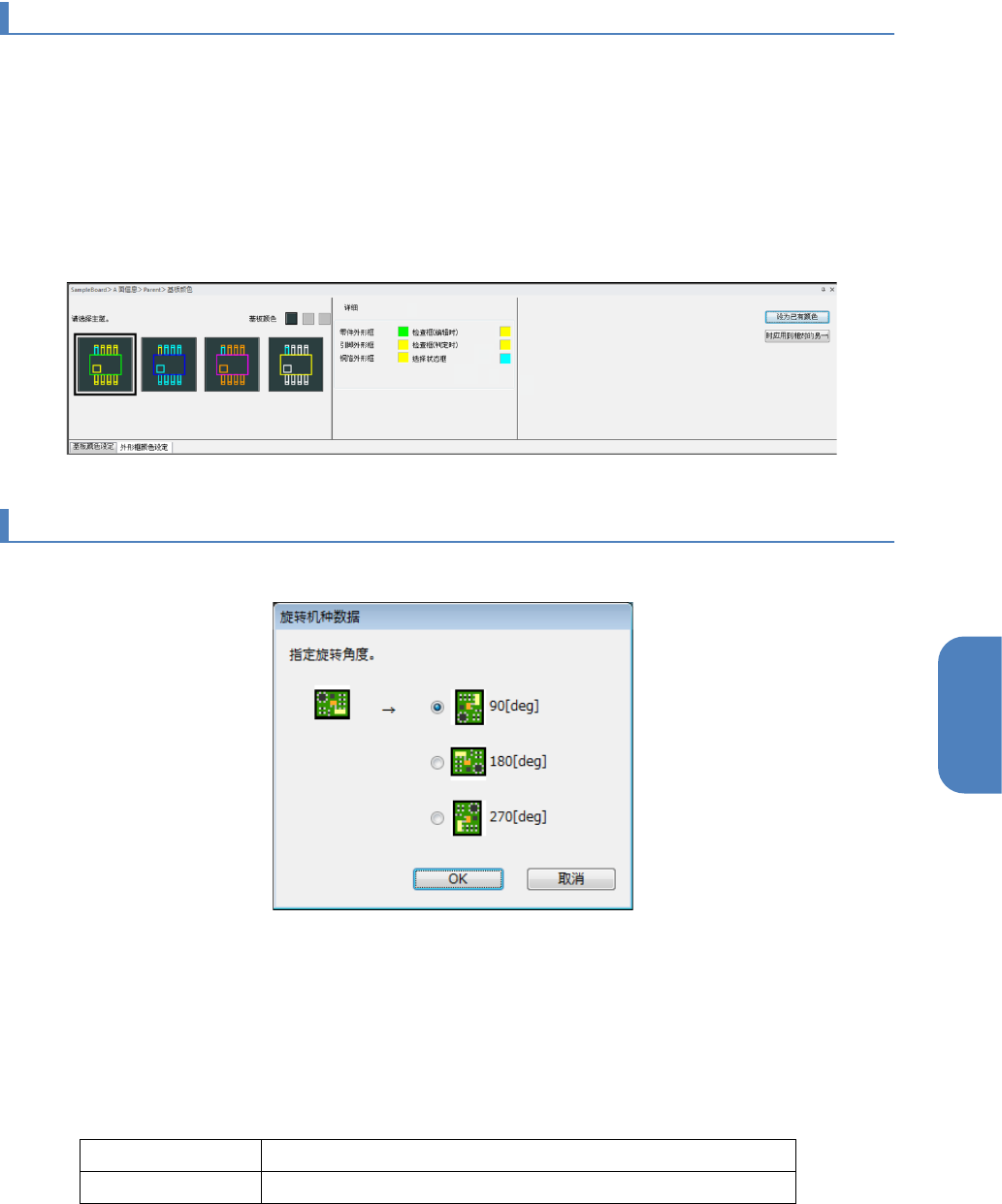 某些基板的颜色会导致外框和检查框难以辨识。可以变更外框和检查框的颜色,使外形框和检查框容易