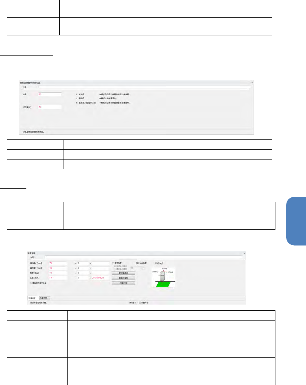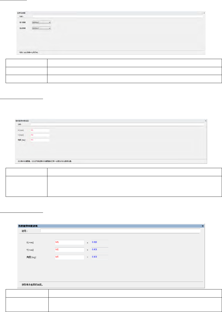 第 4 章 操作 篇 4- 6. 进程模式 219 4 Y [mm] 取得零件搜索结果的 Y 偏移值,输入 设定的代表。 ※默认值代表: M2 角度 [deg] 取得零件搜索结果的角 度偏移值,输入设定 的代表。 ※默认值代表: M3 基板边缘搜索结果 设定基板边缘搜索的 结果偏移 (补正)量。 进行设定后可 补正 块拍摄位置。 说明 输入检查进程的说明, 使之显示。 结果 将基板的有无保存到 本地内存 中。 修正量 ( 补正量 ) 将…