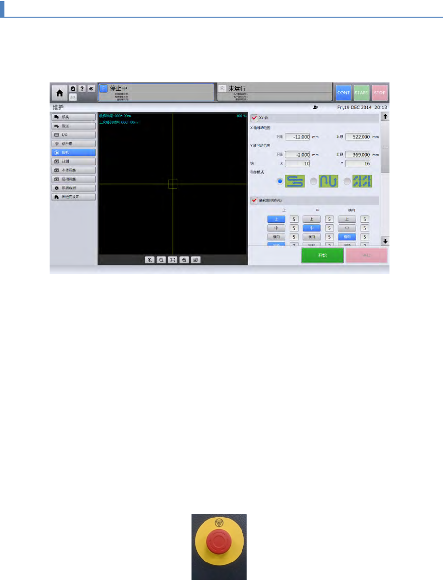 按下本机正面左侧的紧急停止按钮后,确认 XY 轴停止并显示在画面上。